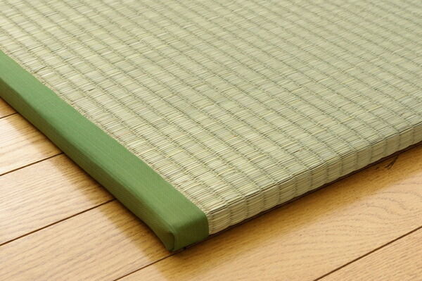 ■届いたユニット畳を床に置くだけで和のスペースが出来上がります。見た目や、い草生地の織りなど一般の畳に近い雰囲気に仕上げました。なつかしい昔ながらの畳がお好みの方におすすめの商品です。 ■こちらの商品の表生地は畳表と同じ織り方の糸引織りで仕上げました。双目織と比べて、い草の打ち込み本数が多いため、しっかりとしていて丈夫です。表面が滑らかなので、ホコリなどがたまりにくいのが特徴です。 ■い草には空気の自然浄化作用、湿度の調節作用などがあります。また汚れにくく、使用するうちに黄金色に変化し、味が出ます。 ■中材に木製ボードを使用した重量感のある本格タイプです。 ■裏の不織布にはすべり止め加工を施しています。また木製ボードとイ草生地の間にウレタンを使用していますので、ほのかなクッション性があります。 ※掲載写真は表記サイズと異なる場合がございます。 ※画面上のカラーはご使用ブラウザやモニターの設定により、実物とは若干異なる場合がございます。あらかじめご了承の上、ご注文をお願いいたします。 | |
