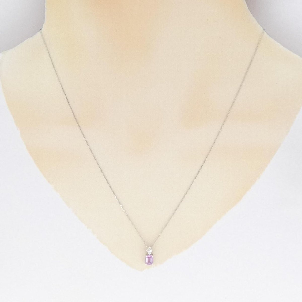爽やかなピンク色のサファイヤがあしらわれたネックレス。愛らしい胸元を演出してくれます。