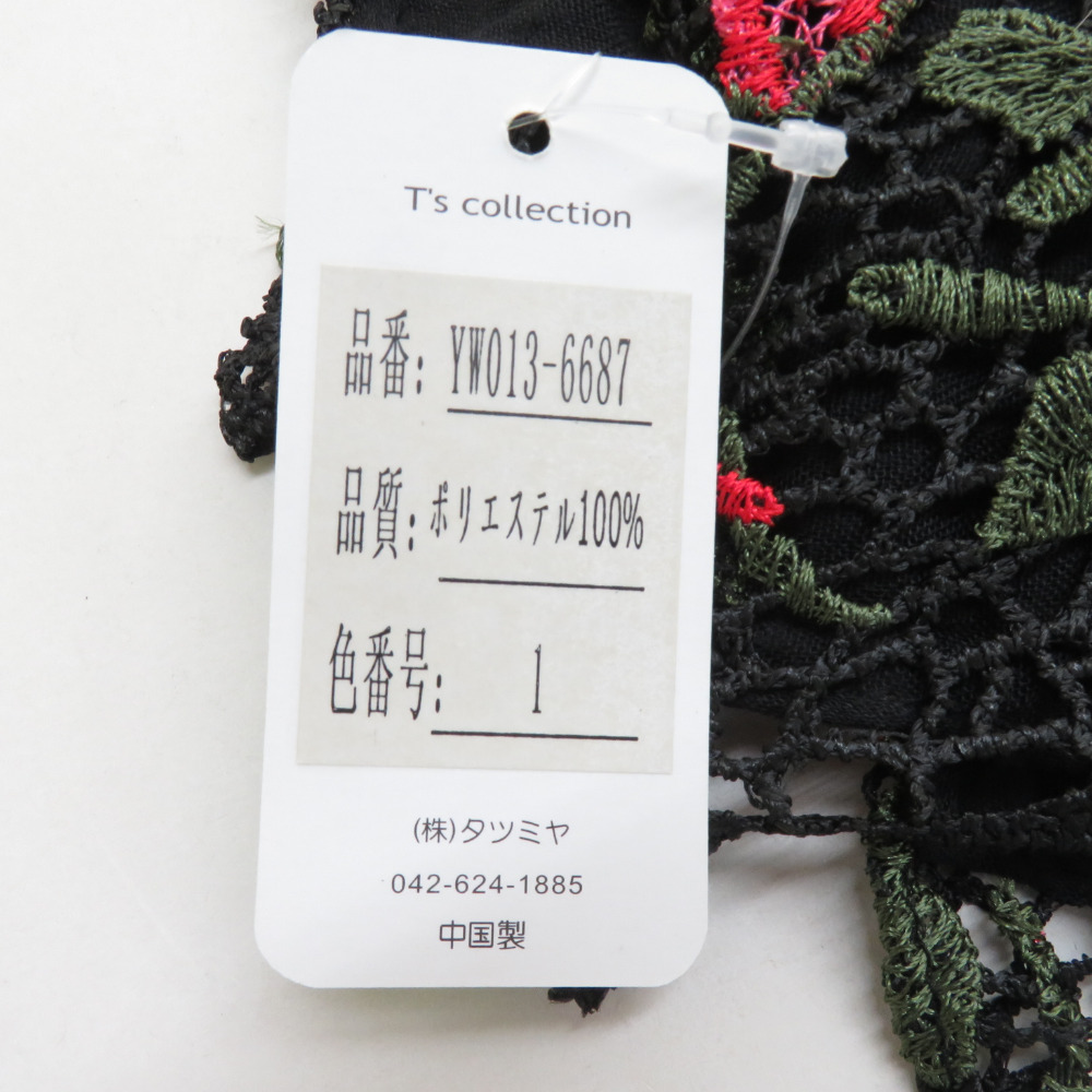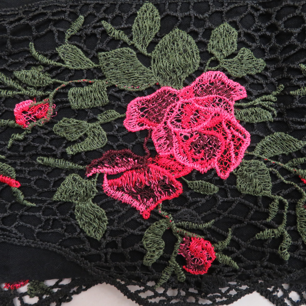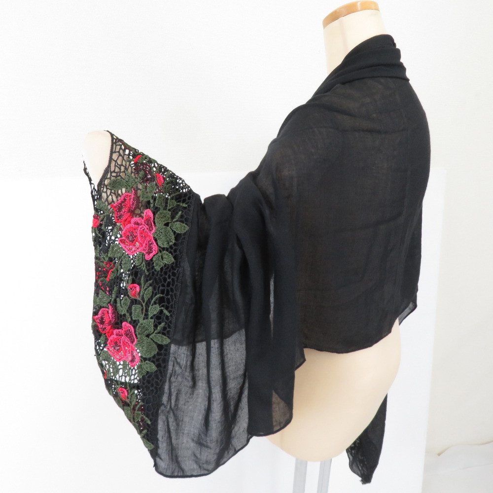 | ショール ポリエステル 薔薇模様 レースショール 黒x赤x緑 |