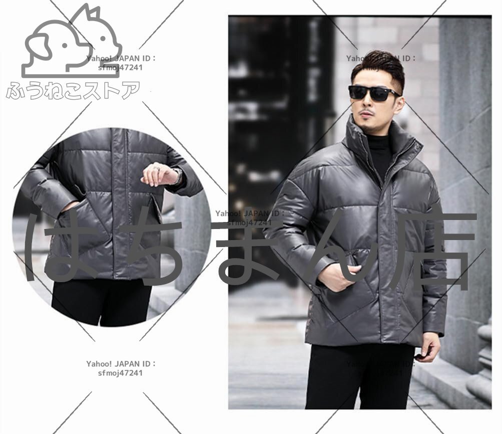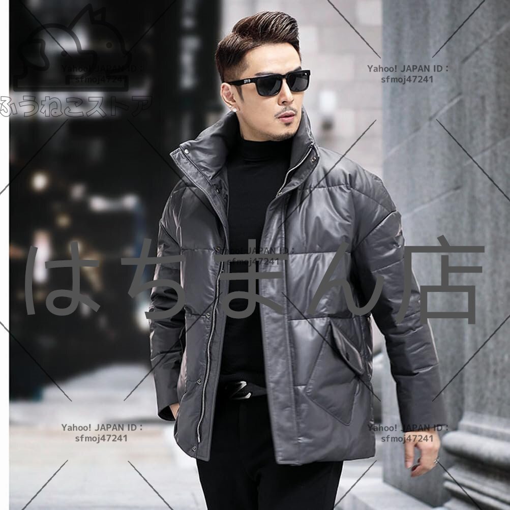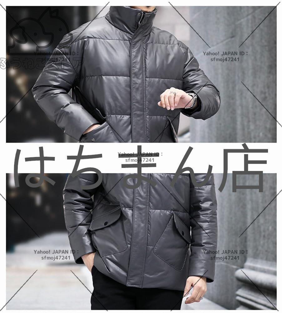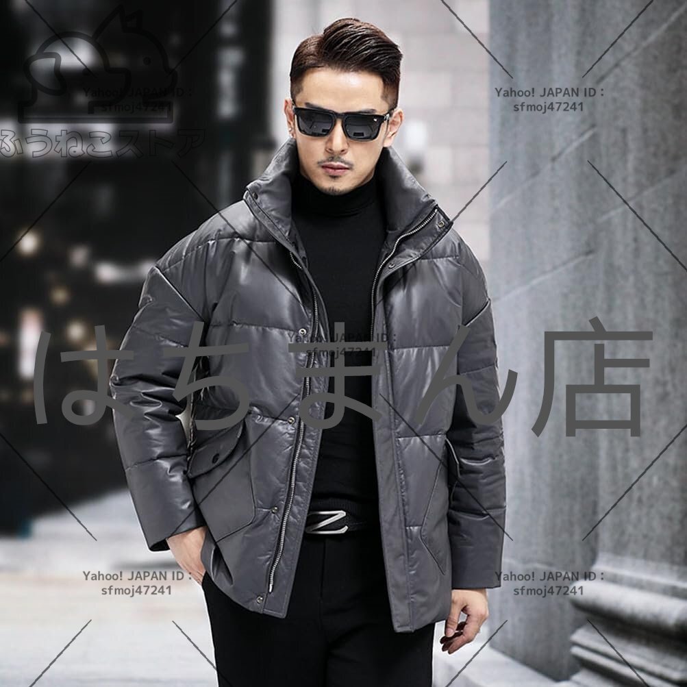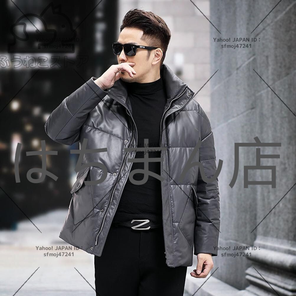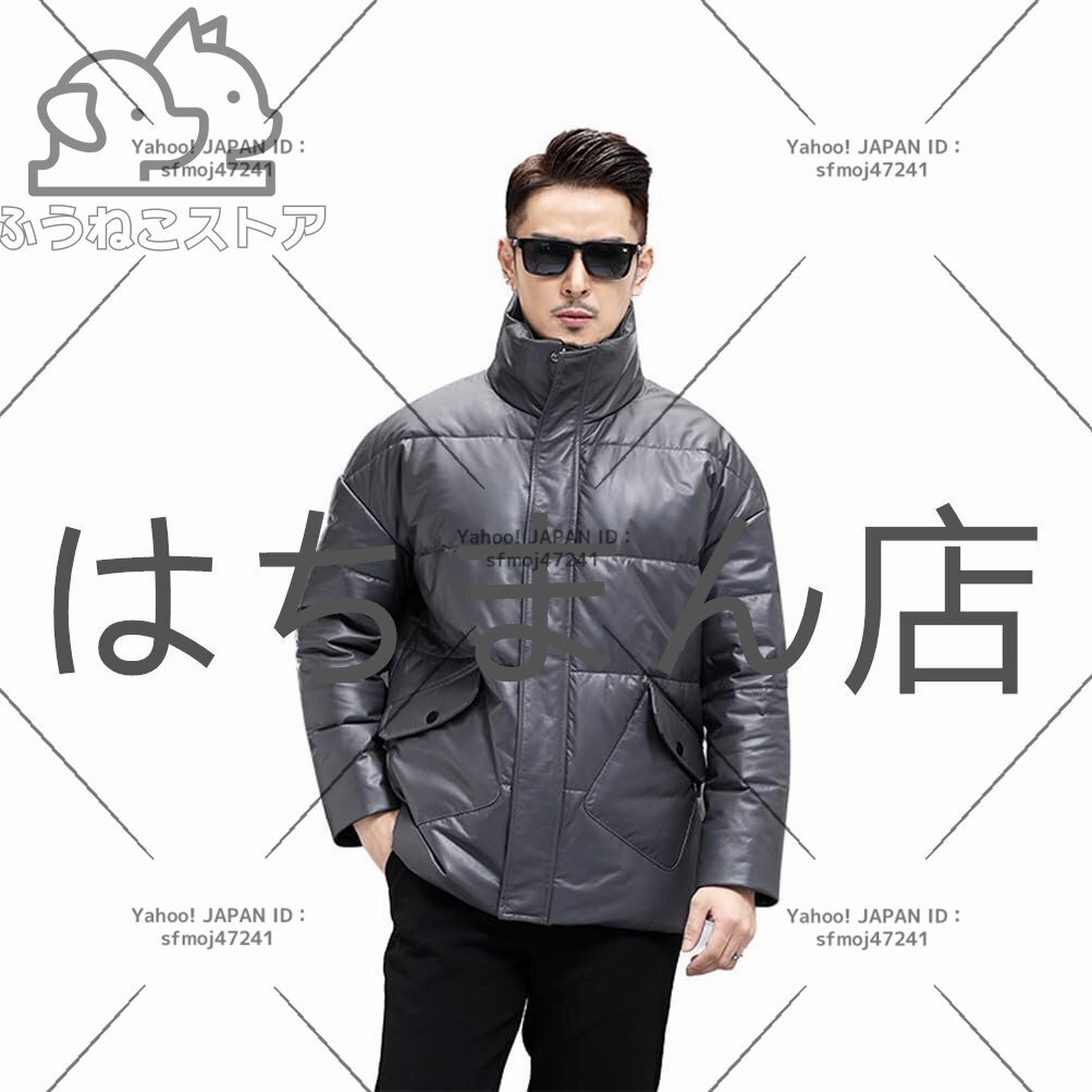 ダウンジャケット メンズ レザーライダースジャケット 本革 牛革 レザーダウンコート 防寒 メンズアウター 革ジャン シルバーグレー M-4XL