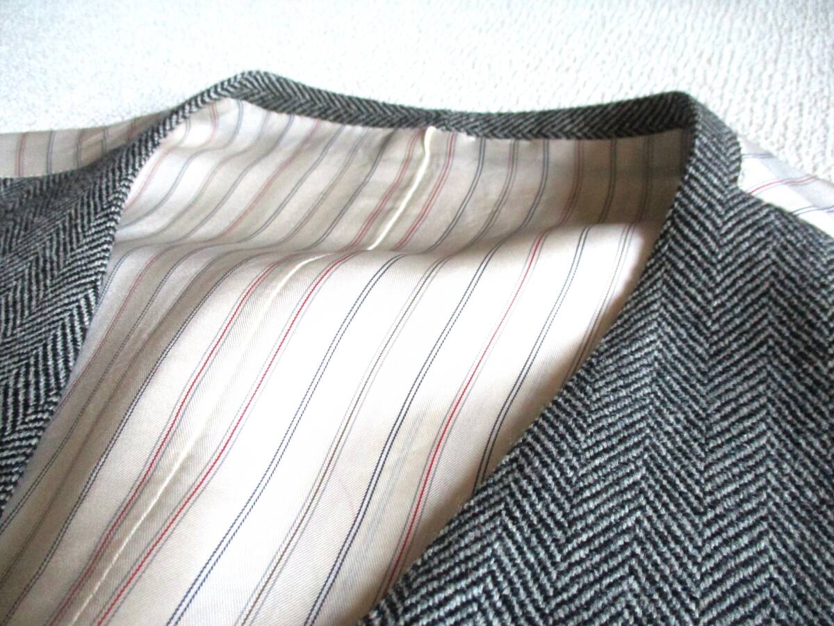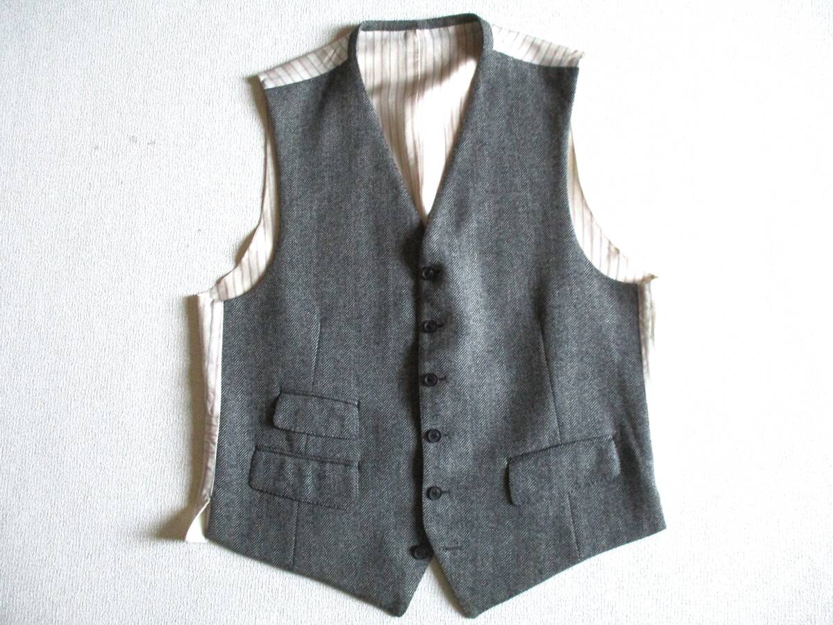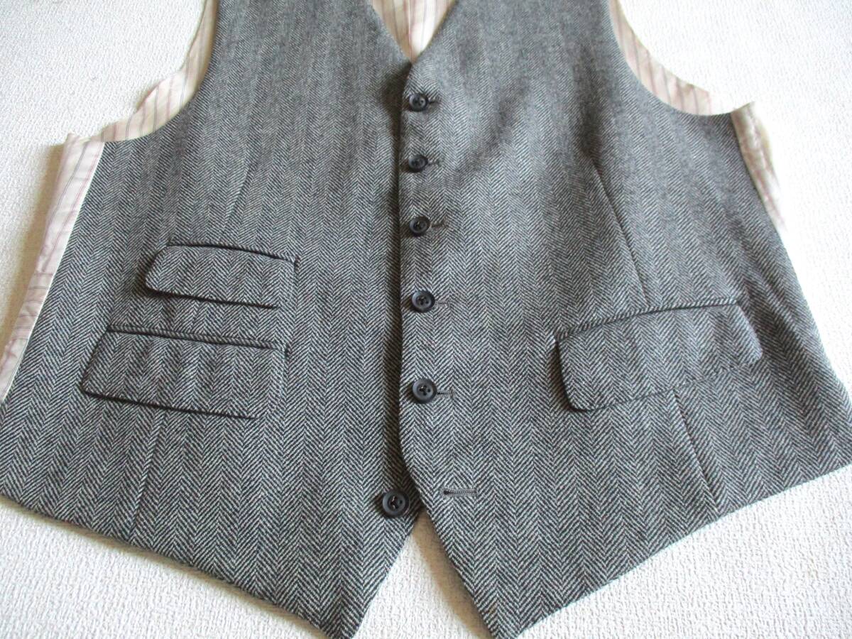 美品★ L バーバリー★ ヘリンボーンウールジレ★ 日本製 カシミヤ混 グレー系