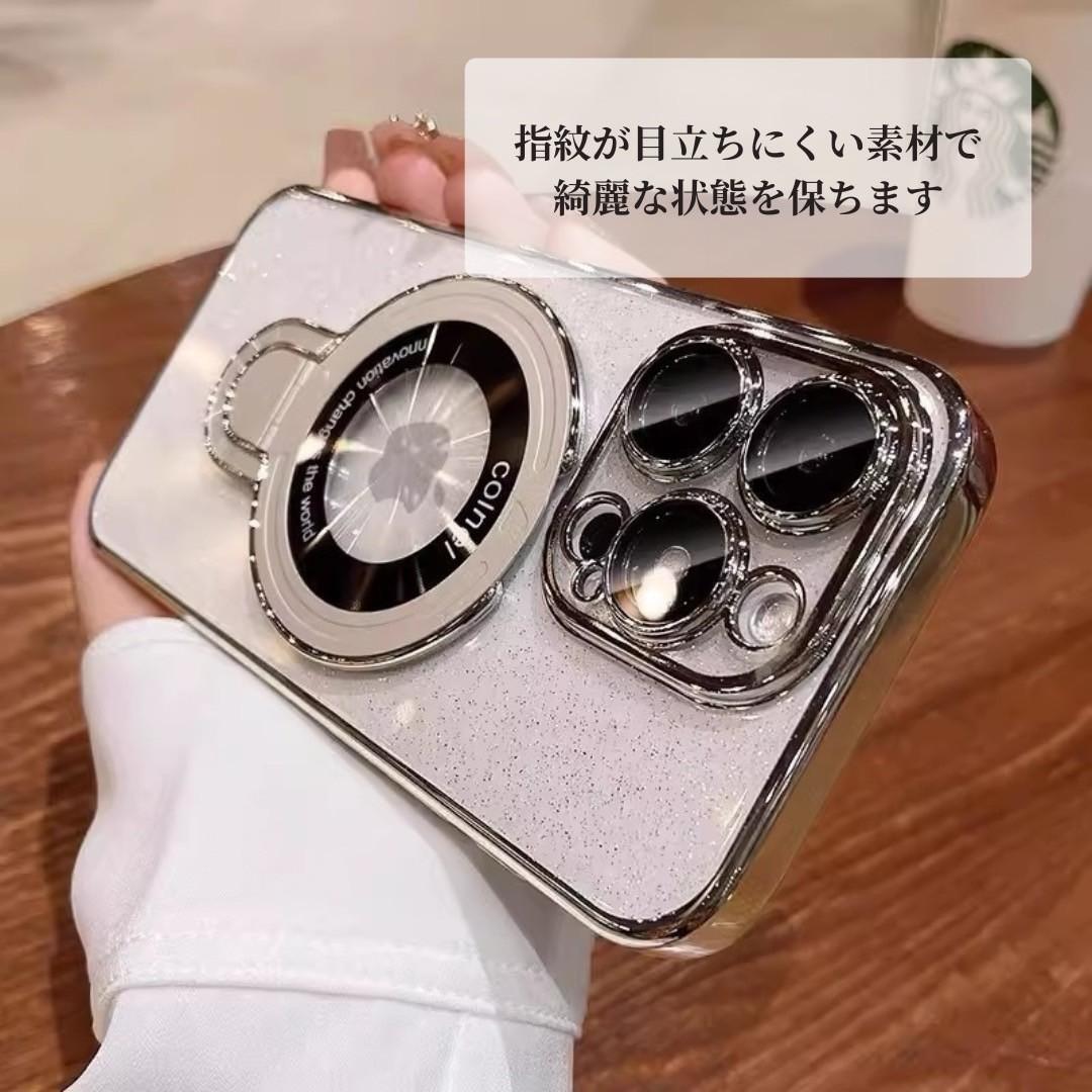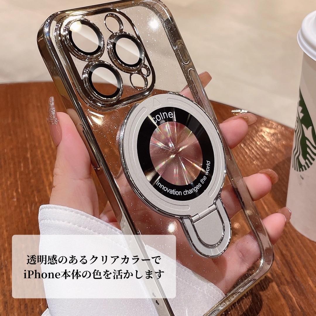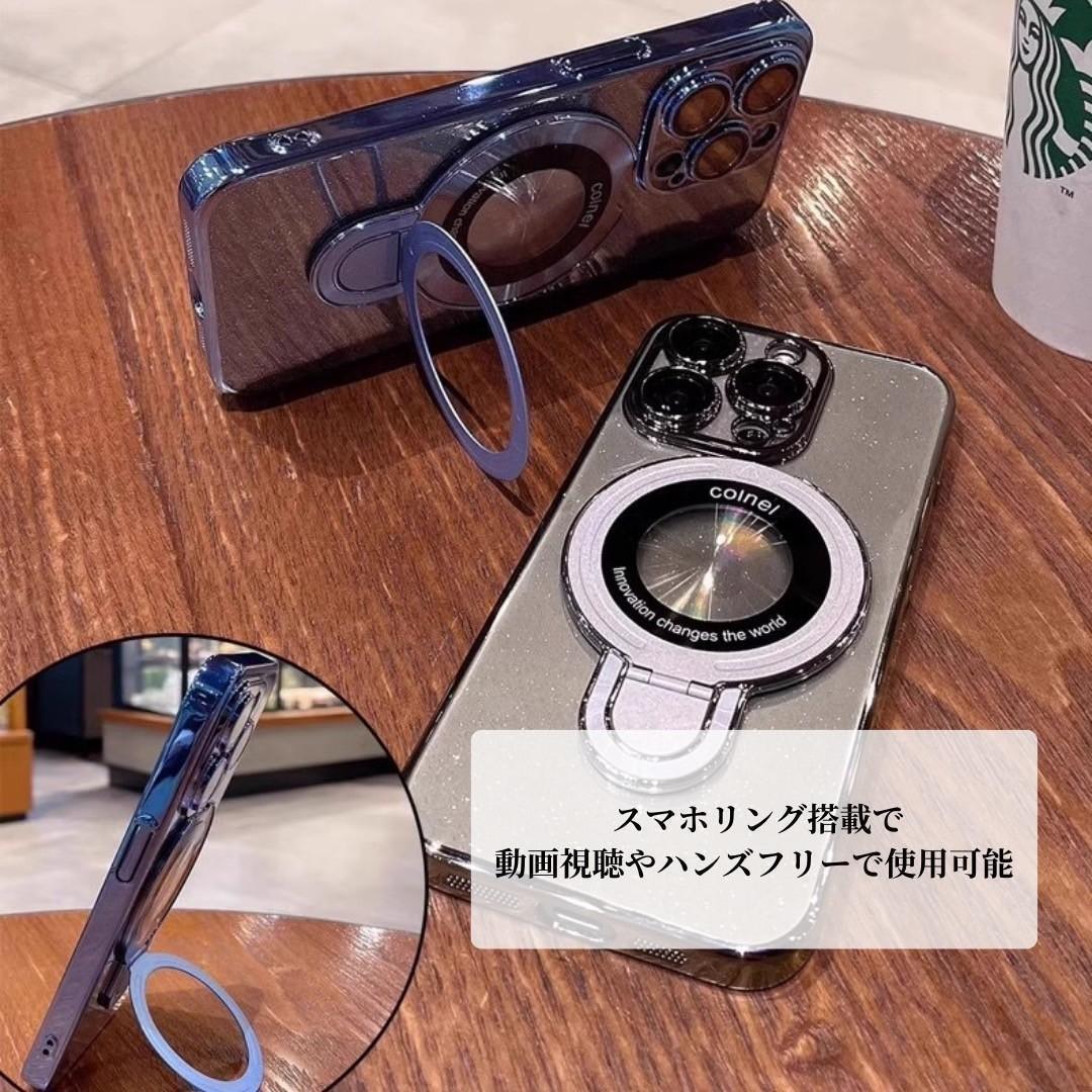 iPhoneケース スマホケース 携帯ケース アイフォン リング スタンド付 ラメ キラキラ ストーン マグネットホルダー クリアケース フリップケース ブラケット機能 magsafe対応 ワイヤレス充電 クリア 透明 カメラ保護 カメラレンズ保護 鏡付 アップル Apple 背面クリア 韓国 中国 インポート