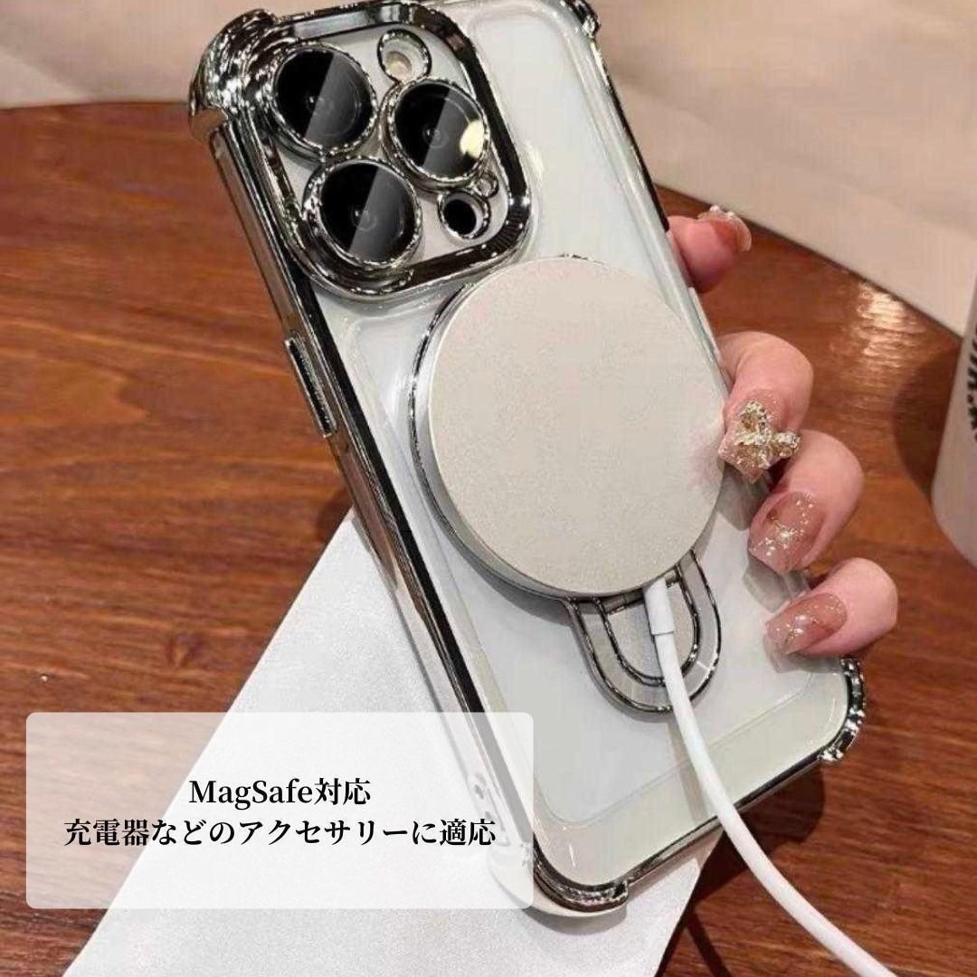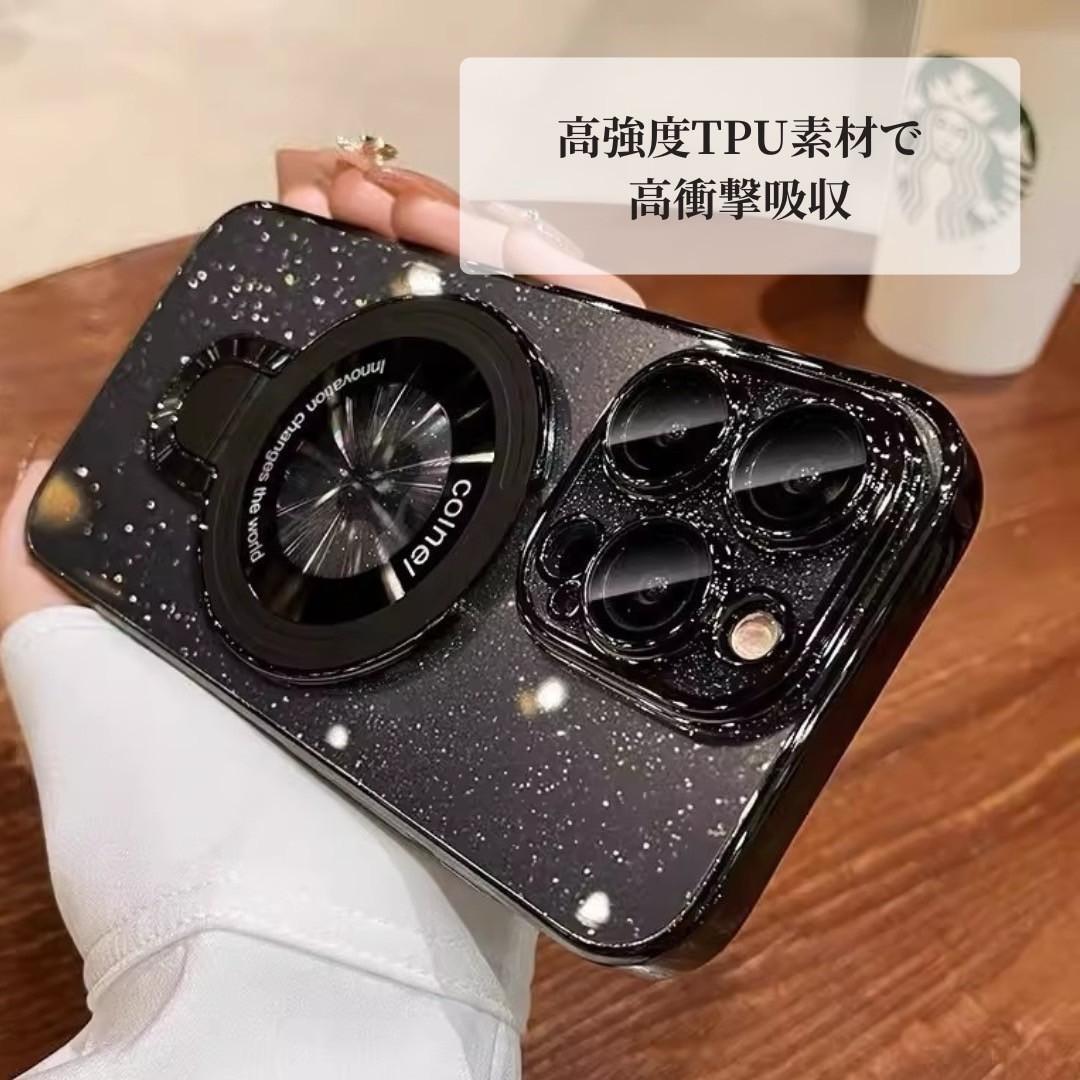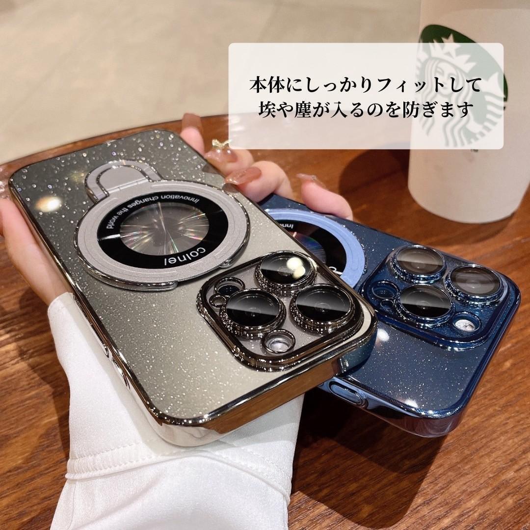 iPhoneケース スマホケース 携帯ケース アイフォン リング スタンド付 ラメ キラキラ ストーン マグネットホルダー クリアケース フリップケース ブラケット機能 magsafe対応 ワイヤレス充電 クリア 透明 カメラ保護 カメラレンズ保護 鏡付 アップル Apple 背面クリア 韓国 中国 インポート