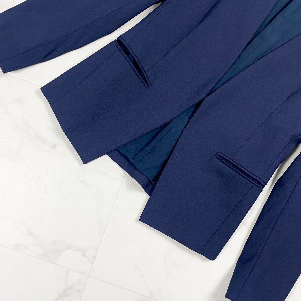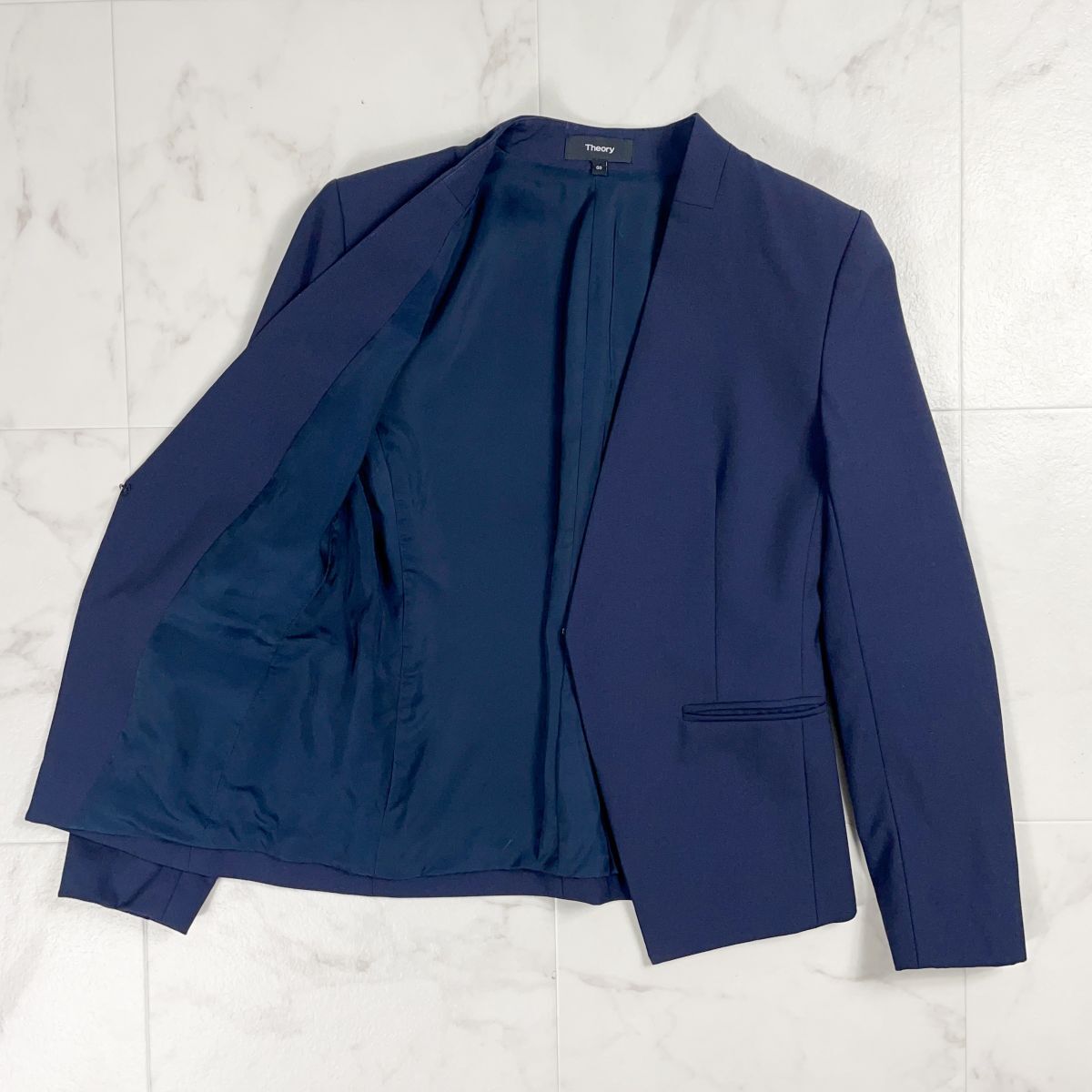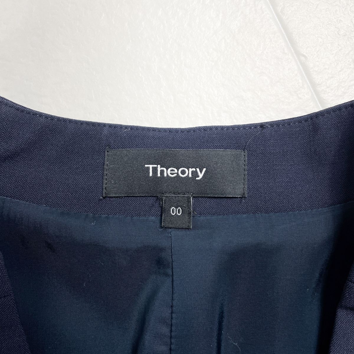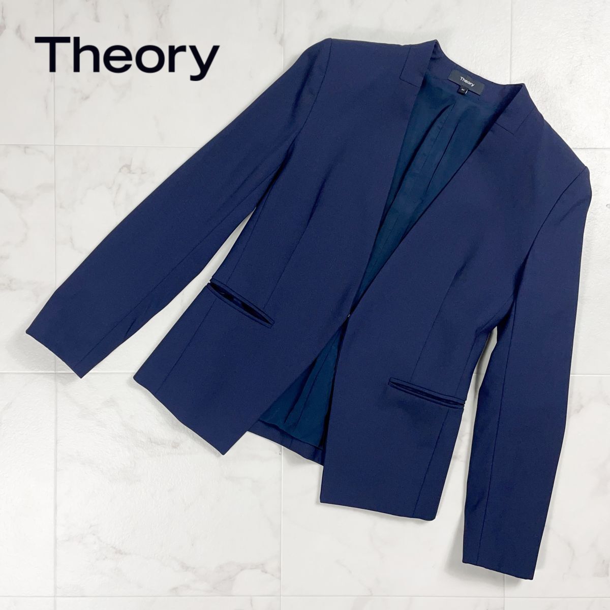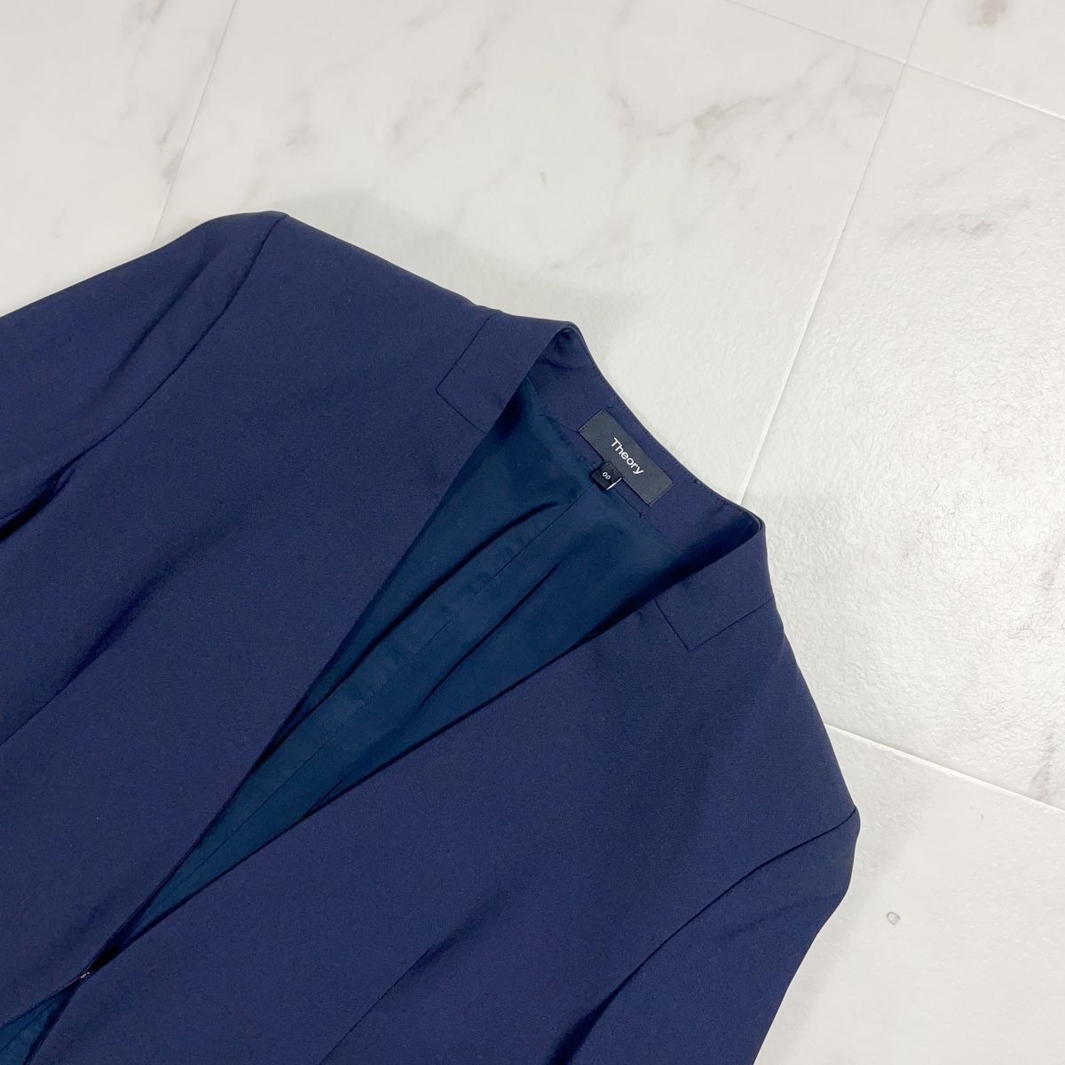 美品 Theory セオリー ウール混 ノーカラージャケット フォーマル レディース ネイビー 紺 サイズ00*ZC734
