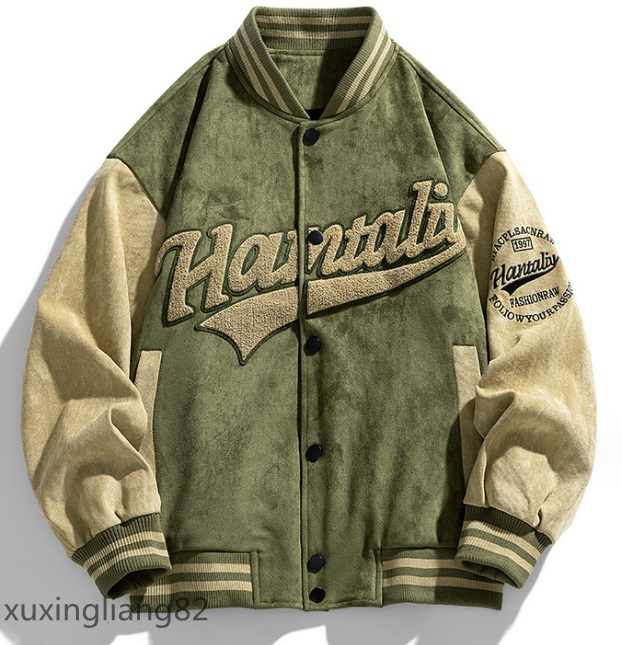 新品 スカジャン 刺繍 スタジャン メンズ ブルゾン フライトジャケット 野球服 上質 アウター アメカジ 緑/L