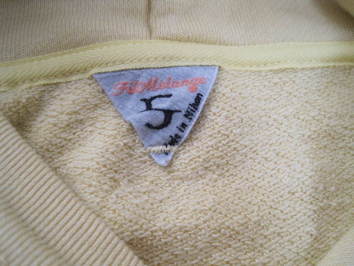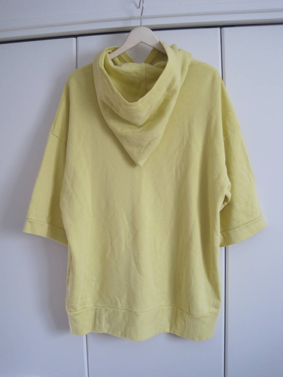 FilMelange フィルメランジェ NISH ドロップショルダー 半袖パーカーになります。特に目立つ傷、汚れはありません。カラーは黄色、サイズは5、綿100%、日本製です。肩幅64cm、袖丈26cm、身幅56cm、着丈70cmです。素人の採寸ですので若干の誤差、商品状態はご了承ください。 落札後は、ノークレーム、ノーリターン、ノーキャンセルでお願いします。発送方法はレターパックです。ほかにも色々出品していますので良かったらご覧ください。