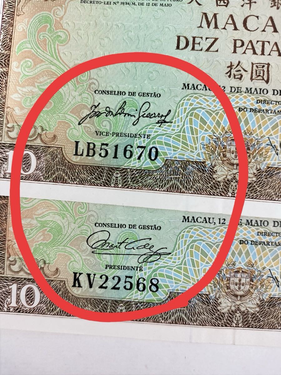 商品に興味をもっていただき、ありがとうございます。3497.マカオ2枚(サイン別)1984年