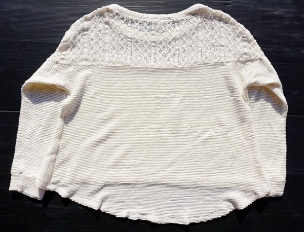 ★商品状態★ ・着用感ございますが特に目立つダメージや汚れなどはございません。問題なく着用していただける程度かと思います。 ・MADE IN USA ★配色★ 白 ★サイズ表記★ レディースS ・実寸を参考にして下さい。 ★実寸サイズ★ 肩幅--- 身幅 56㎝(脇下~脇下) 着丈前46㎝(襟下~裾) 着丈後56㎝ 袖丈 41㎝(脇下~袖先) ・平置きにての採寸となります。 ・若干の誤差はご了承ください。 | ||||