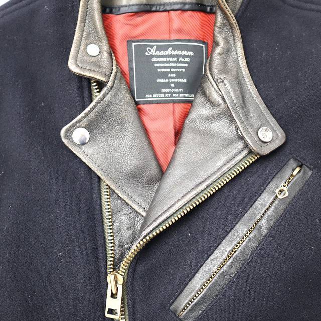 アナクロノーム anachronorm レザー切替 メルトン ライダースジャケット 00 US36インチ メンズ