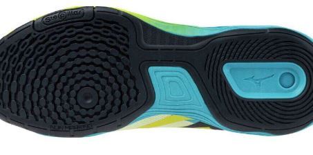 ソールの波形構造により、クッション性と安定性を両立させるミズノの基幹機能