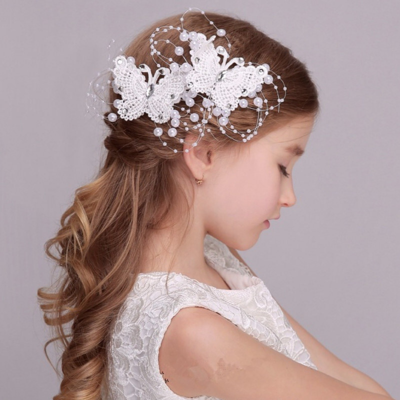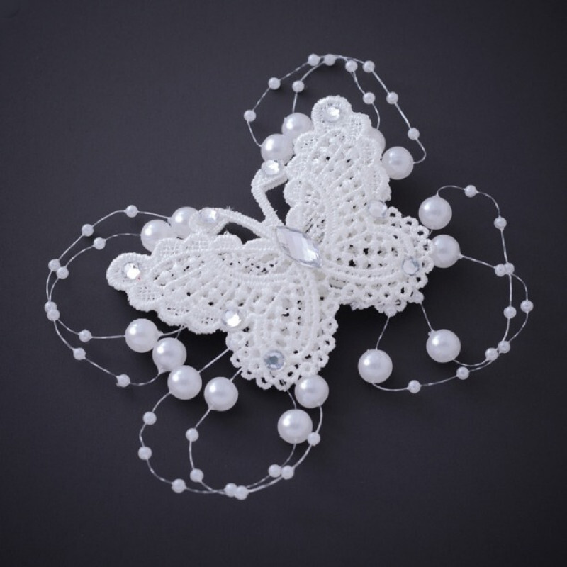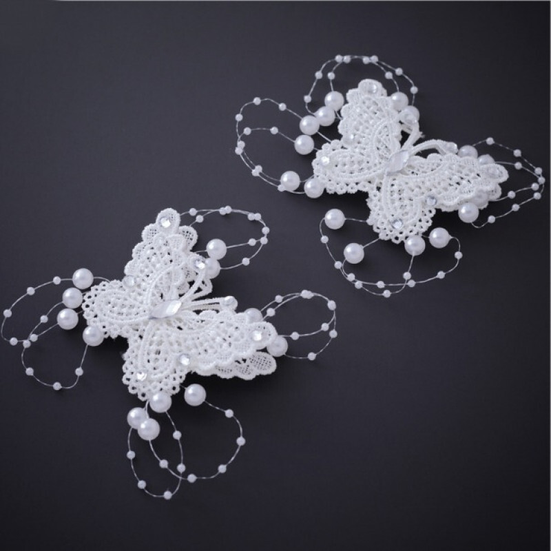 ヘアアクセサリー 蝶 2個 パール ヘアクリップ ヘッドドレス 髪飾り 白 蝶々