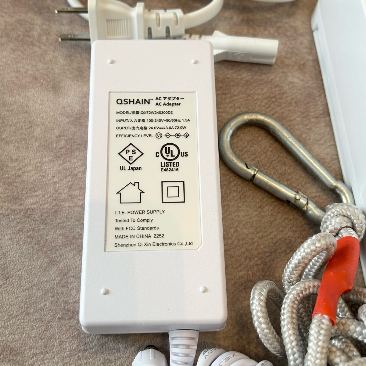 消費電力:72W ± 5%,騒音:75db、電池容量:500mAh 本体サイズ:20*20*6.5cm,安全ロープ:5m