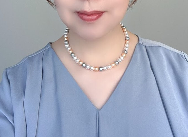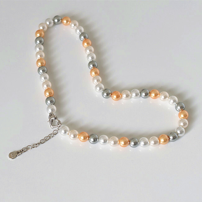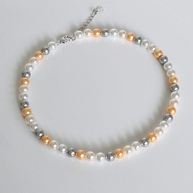 ●パール素材:ガラスパール。●サイズ:直径8mm、全長約41cm。アジャスター約5cm、全長約46cm。●金具:真鍮、ロジウムコーティング。●カラー:ホワイト、ウォームホワイト、ゴールド、シルバーグレー、写真に参照 。●重さ:約34.2g。