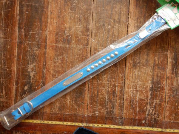 未使用 革製 犬猫用首輪8号 6 青 ハート 皮一枚首輪