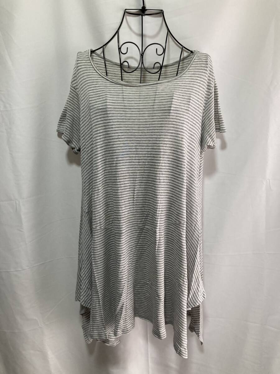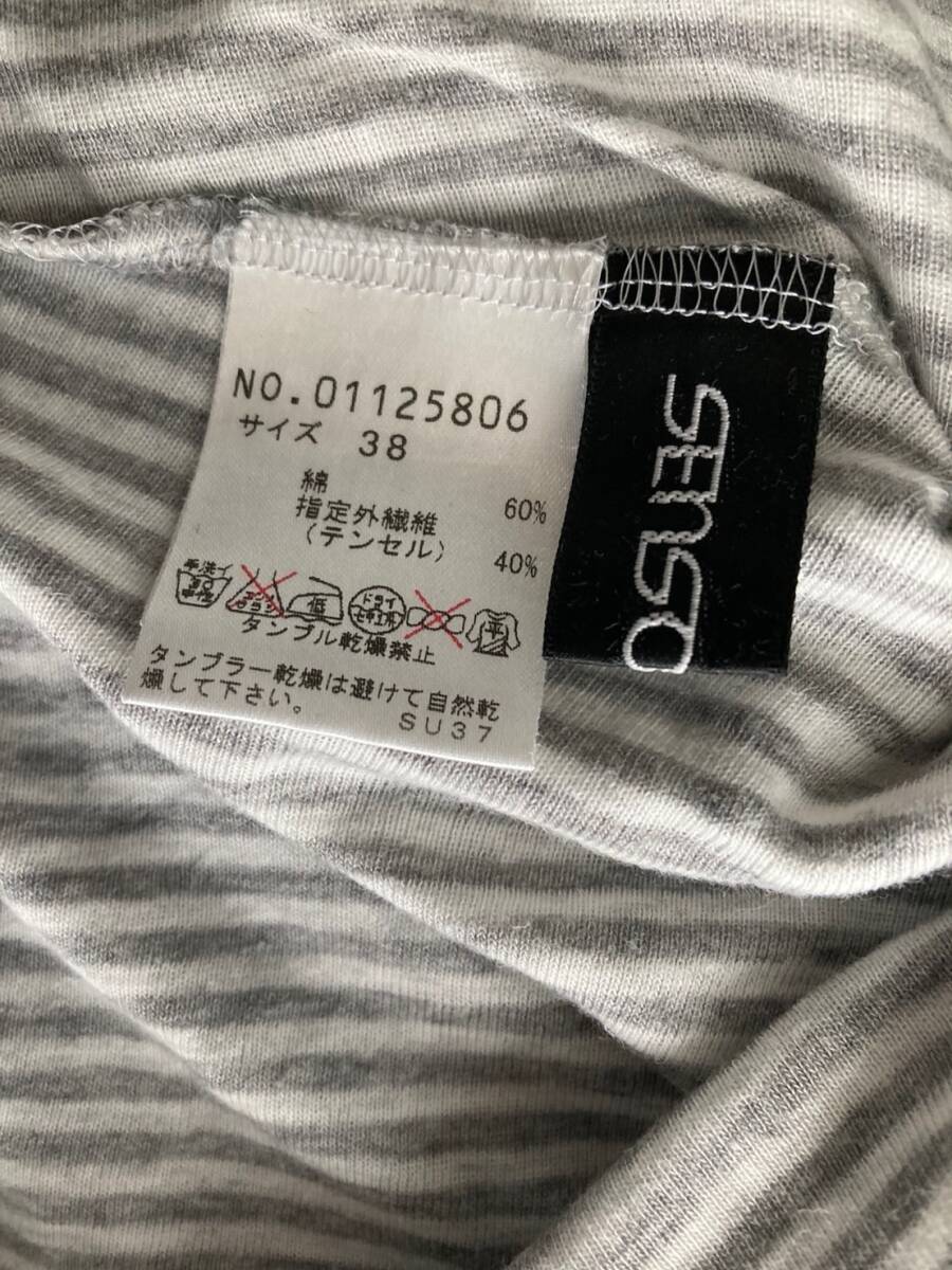 sensounico センソユニコトップス チュニック カットソー 古着 レディース 38綿 半袖 ボーダー グレー系 夏 se-2-148