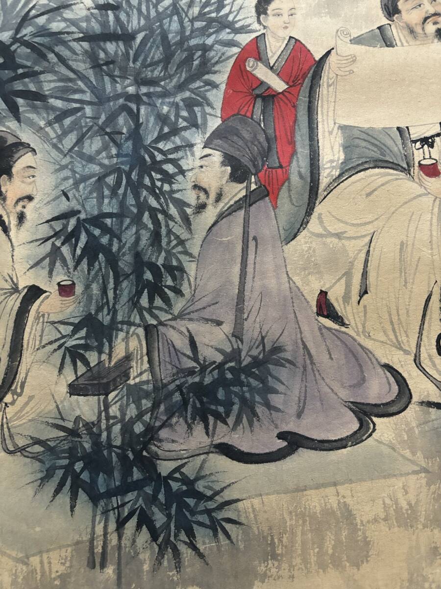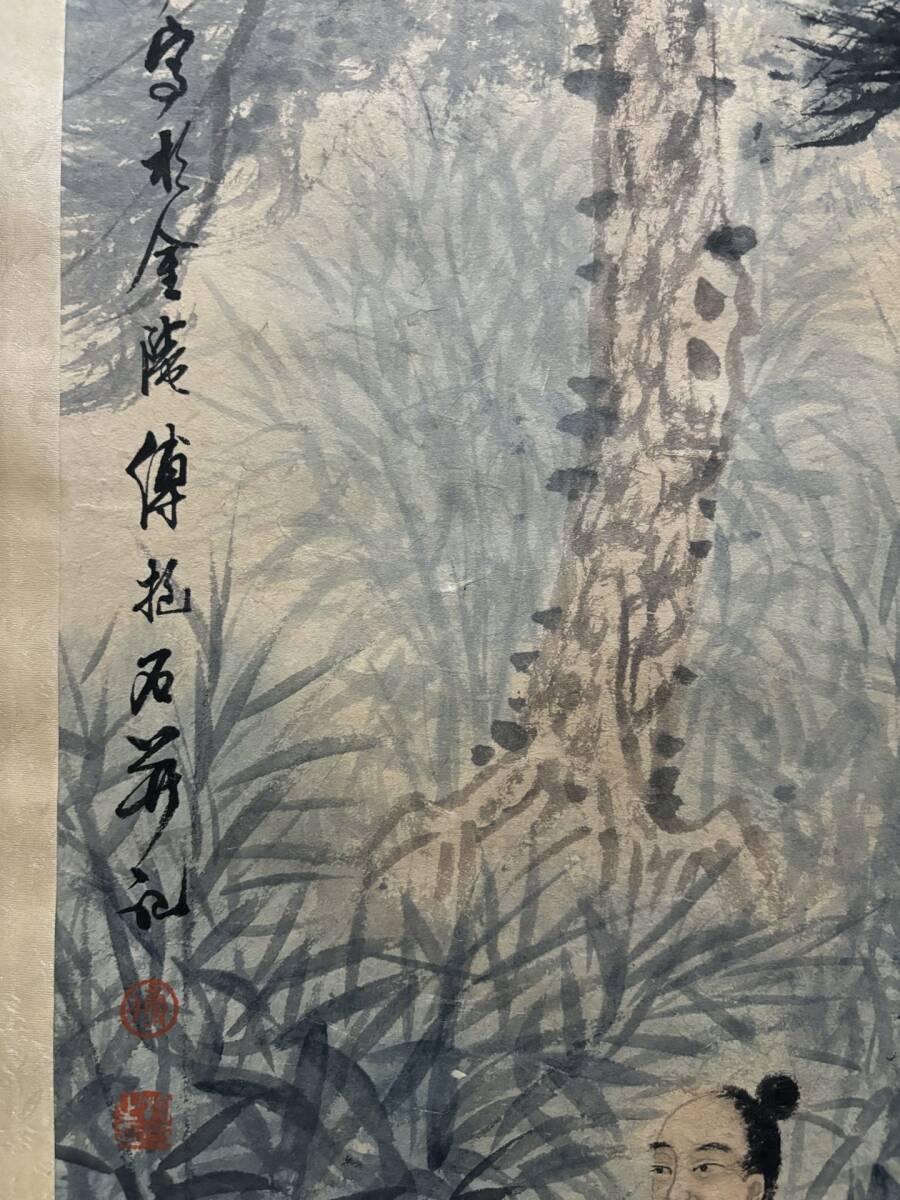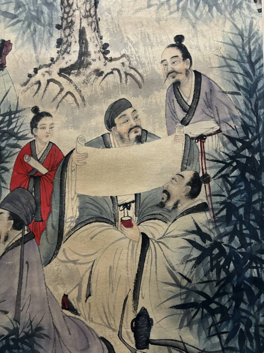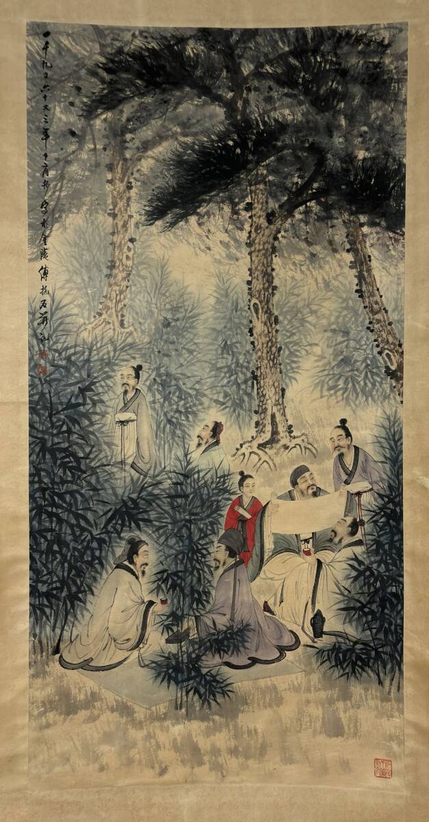 中国書画 掛け軸 中国・近現代 傅抱石書「竹林七賢図立軸」紙本立軸 書道巻物 真筆逸品 肉筆保証 唐物 古画 LOT-022411 | |||