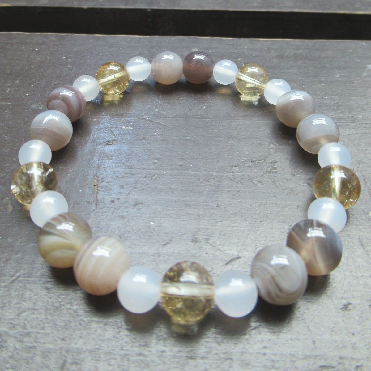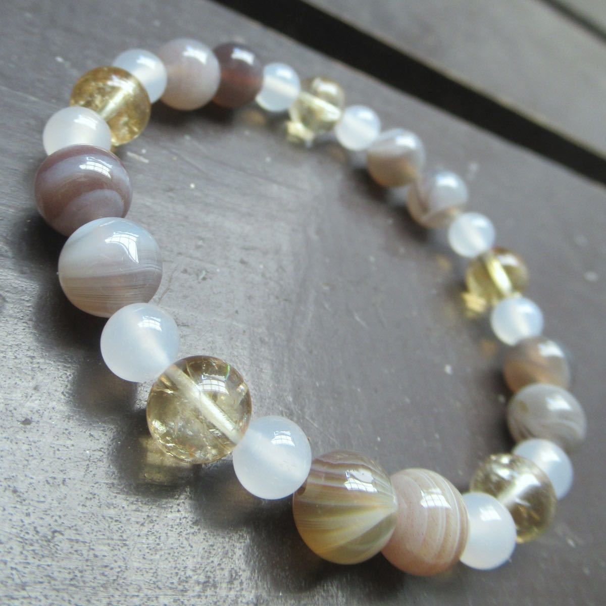 シトリンxボツワナアゲートxカルセドニーブレスレット 天然石 パワーストーン