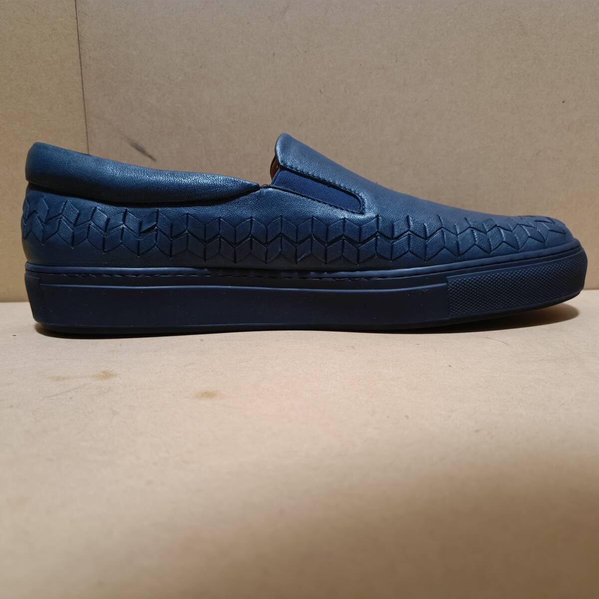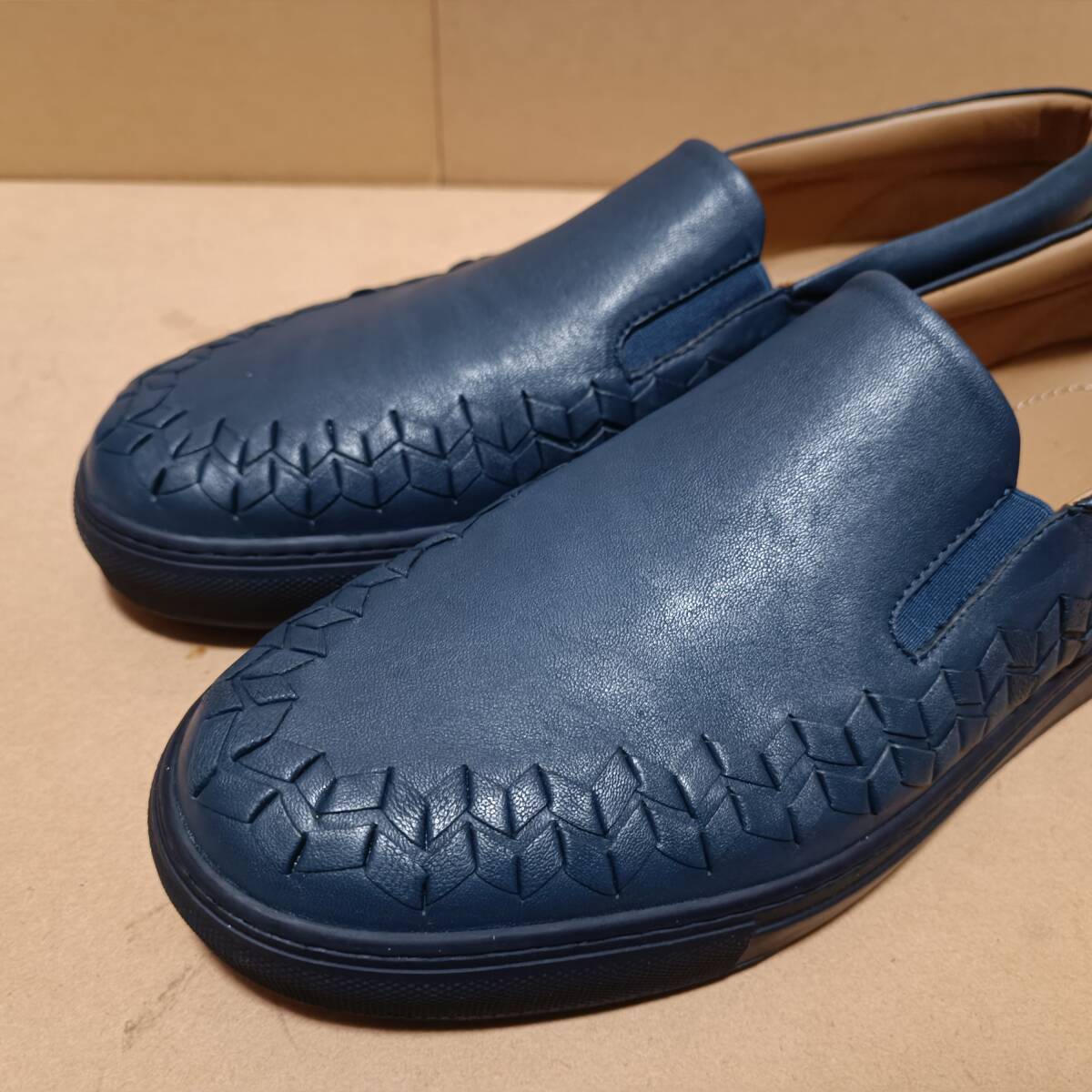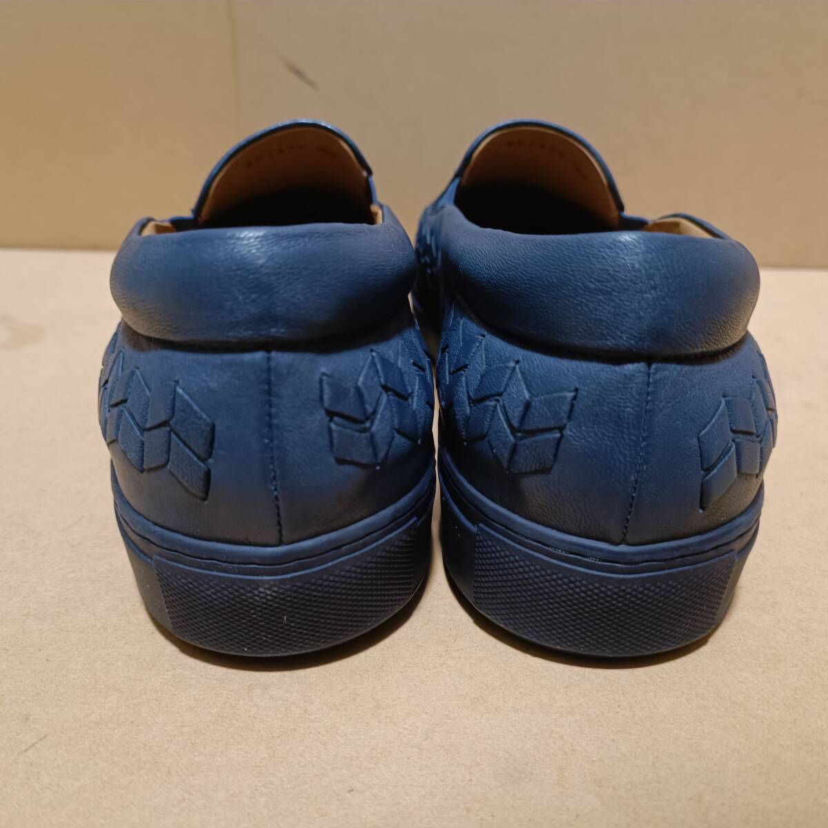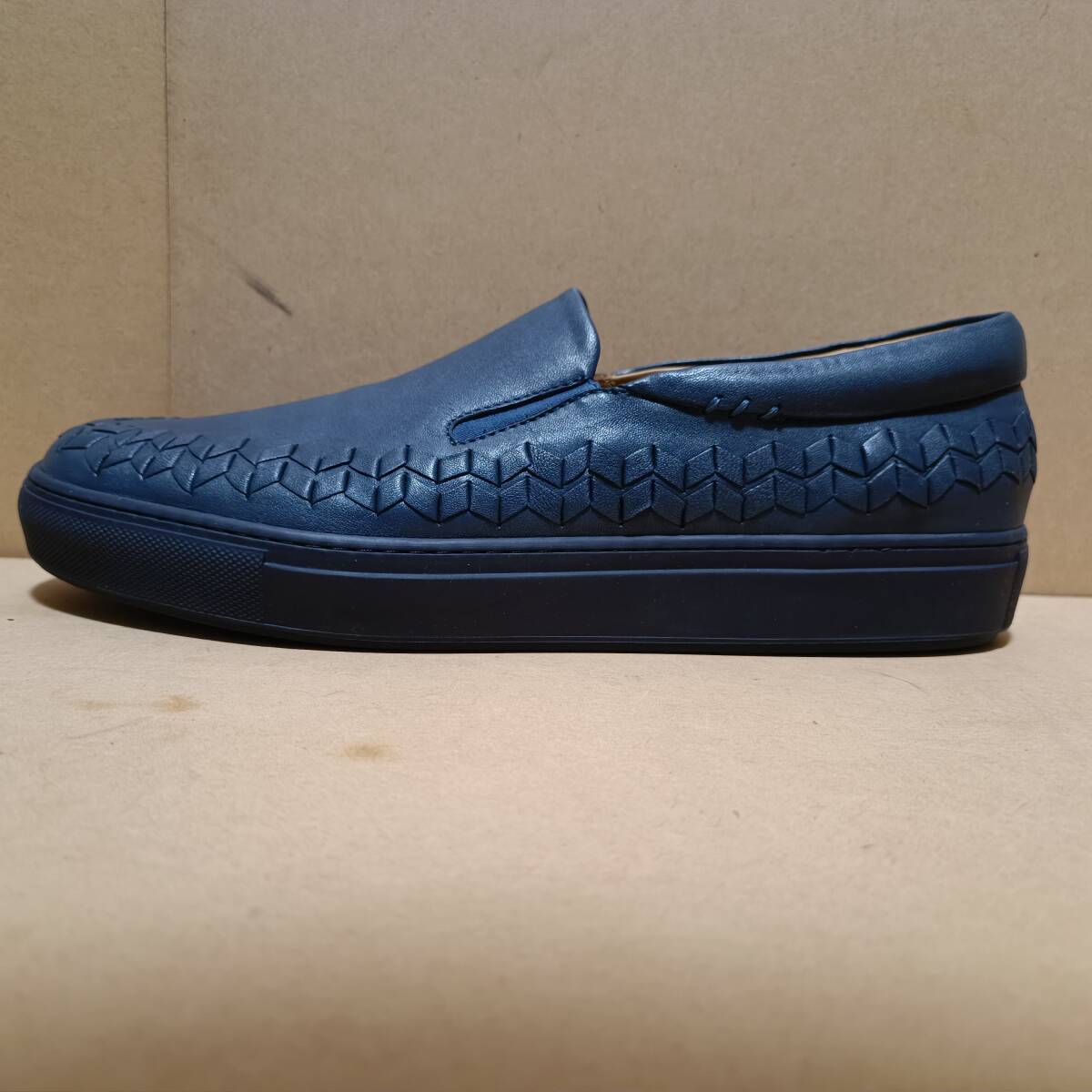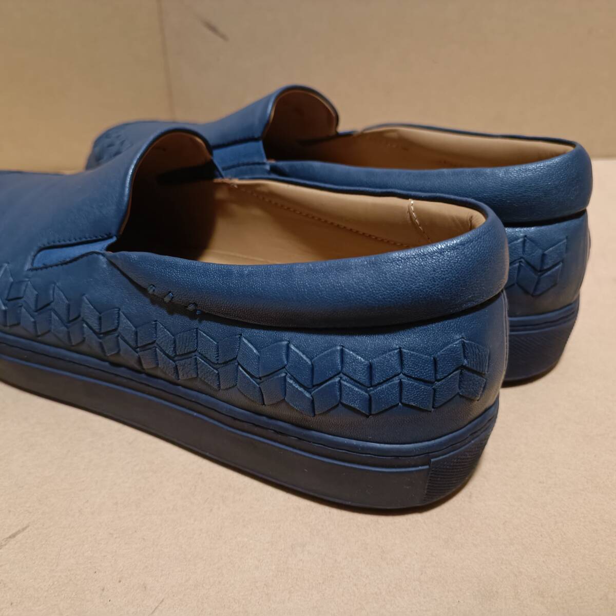 青緑色の差し込み加工レザーを用いたスリッポン式のスニーカーです。