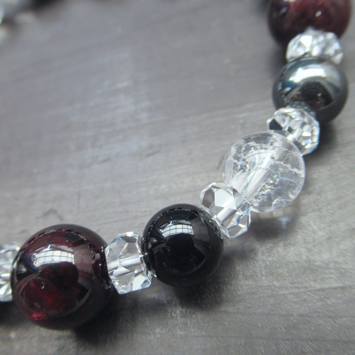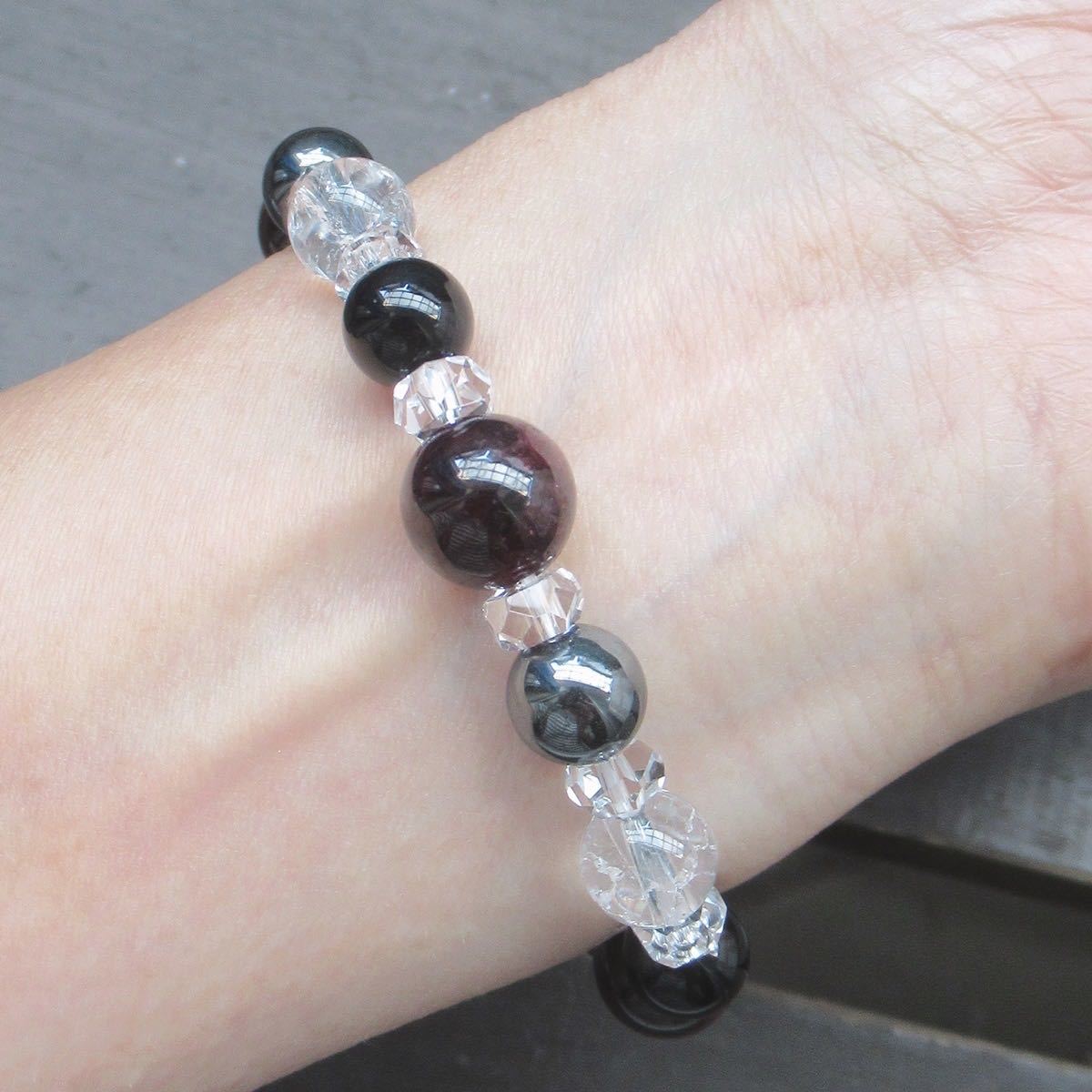 ガーネットxオニキスxヘマタイトxクラック水晶ブレスレット 天然石 パワーストーン