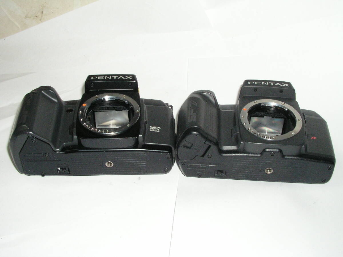 ★ PENTAX SFX + SF7、ボディ2台で ★8941 中古、外観はスレなどはありますが特別大きいアタリ凹み傷はございません、 カメラ本体のみの出品です(付属品はありません)。 ●2台ともシャッターは切れて動作はしているようですが、大雑把なチェックしかしていません、保証なしのジャンク出品です。 ●参考までに簡易チェックのみ行いました(動作の保証は出来ません)、 シャッター切れてフィルム巻き上げます、AF、AUTO絞り込みも動作、ストロボも発光、モード切り替えも反応しています、 ファインダーは多少の汚れはあります、プリズムは目を離して見ると薄っすらと横バーが見えますが視野はまずは良、 デートは SFX は表示、SF7 は電池切れだと思いますがチェックしていません、 全ての動作を確認した訳ではありません、その他のチェックはしていません、コスト的に実写確認もしていません。 状態の説明は私の個人的な主観ですので、入札、落札者様の感覚とズレがある可能性があります、 古き時代のフィルムカメラの未整備(簡易清掃はしています)現状ジャンク出品です、そのような観点からご覧下さい。 発送は、ヤマト60サイズ(配達日時の指定可、県別の料金を別欄に明記しています)、になります。 ●保証ナシのジャンク出品です、 状況説明は出品前のチェック時の状態ですが、詳しく調べていませんので、見落としを含め到着時に保証するものではありません、 ジャンクの意味が解らない方は入札しないで下さい、ノークレーム、返品も不可です。 |