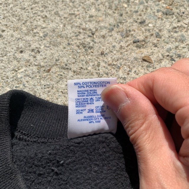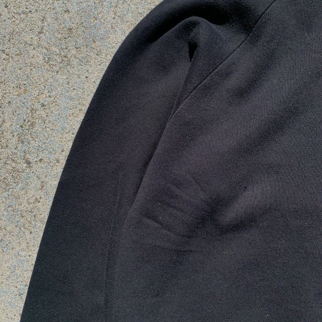 ★商品状態★ ・着用感があり、右胸部に小穴のリペア、細かな毛玉が見られます。 ・古着慣れされている方でしたら問題なく着用していただける程度かと思います。 ・MADE IN USA ★素材★ COTTON/POLYESTER 50/50 ★配色★ 黒 ★サイズ表記★ XL サイズ表記の割に小さめ ・実寸を参考にして下さい。 ★実寸サイズ★ 肩幅--- 身幅59㎝(脇下~脇下) 着丈63㎝(襟下~裾) 裄丈87㎝(背面中央~袖先) ・平置きにての採寸となります。 ・若干の誤差はご了承ください。 | ||||