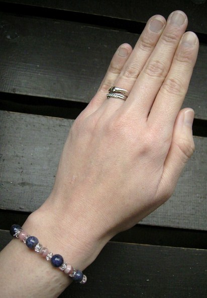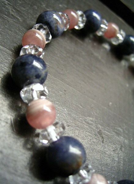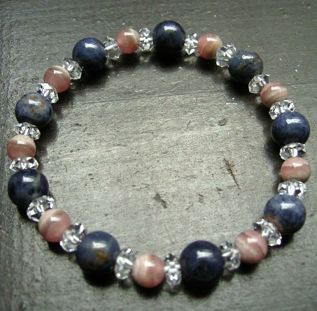 サファイアxインカローズxカット水晶ブレスレット 天然石 パワーストーン