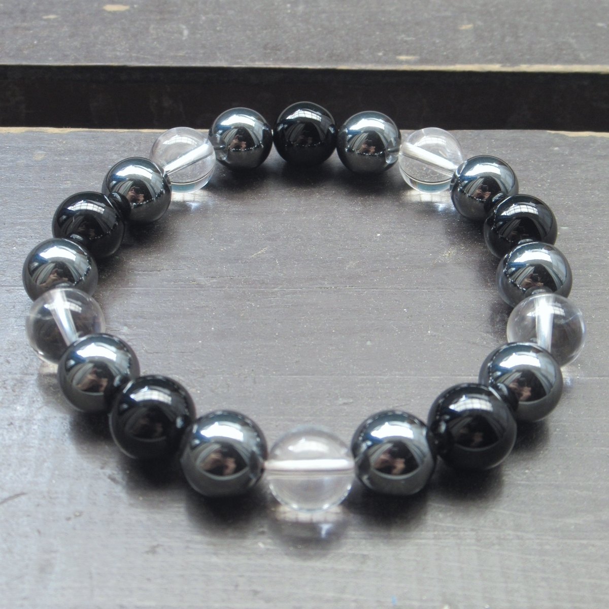オニキスxへマタイトx水晶ブレスレット 天然石 パワーストーン