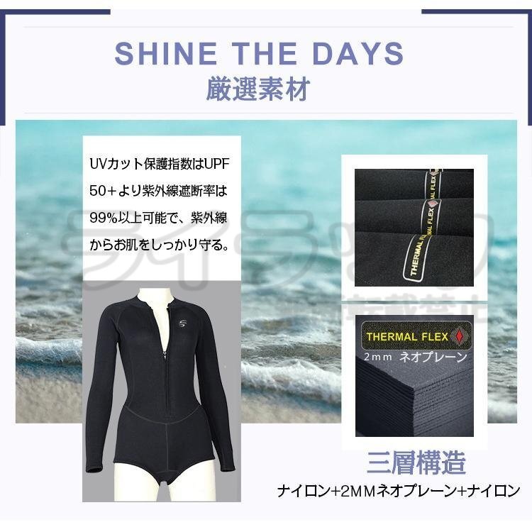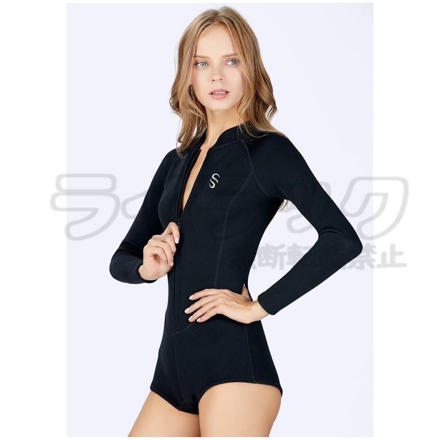 【S】ウェットスーツ ロングスプリング レディース 2mm ネオプレーン 前開き フロントジップ サーフィン 水着 女性用 スプリング