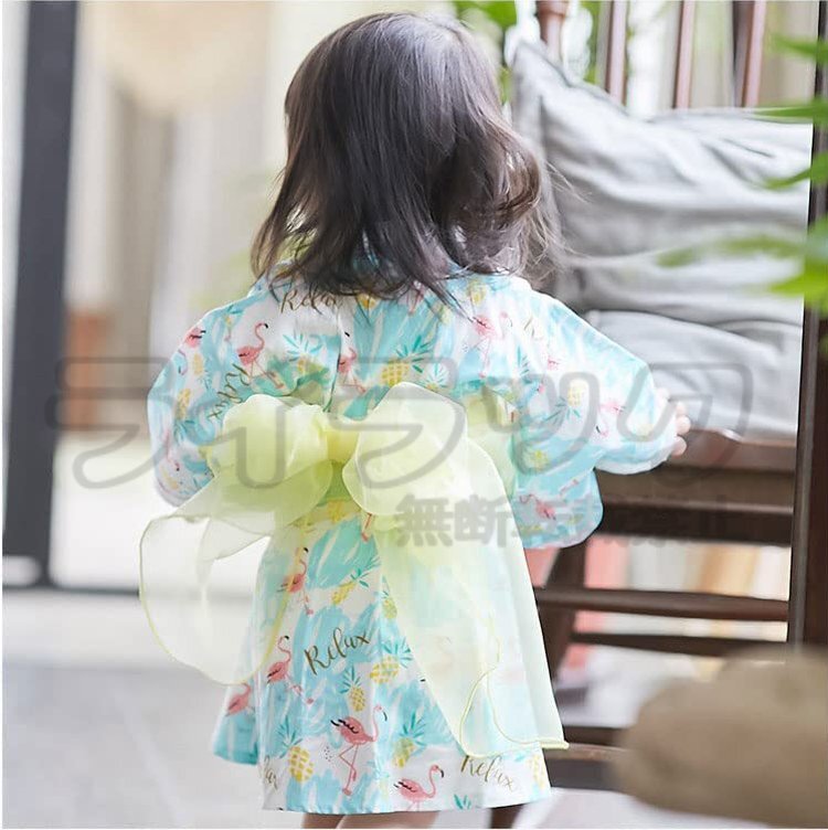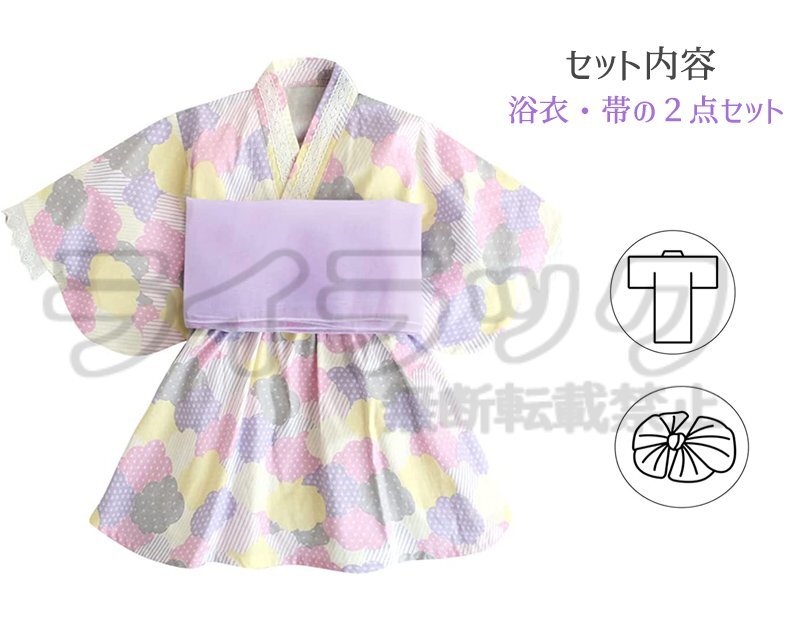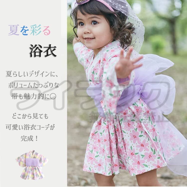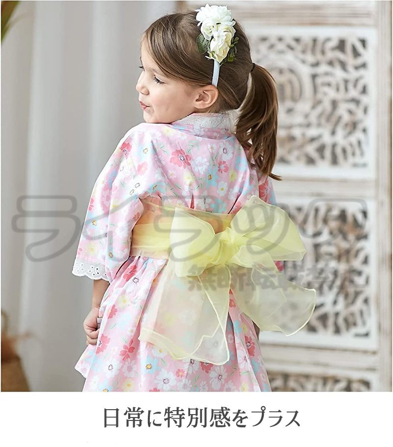 【120cm】浴衣 子供 女の子 兵児帯2点セット 子供服 ベビー キッズ 夏祭り 夏 和装 ゆかた 子ども こどもゆかた 帯セット ワンピース