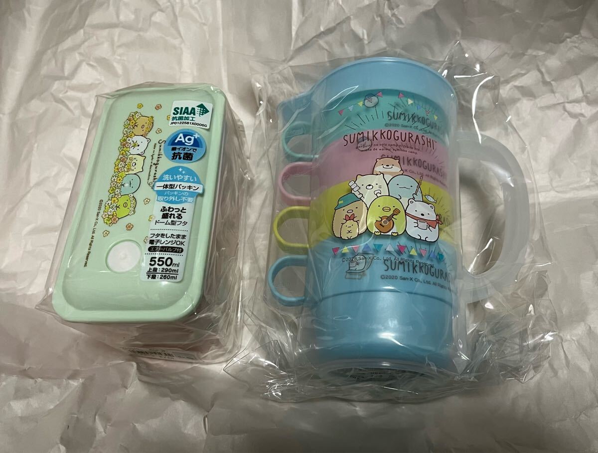 すみっコぐらし ねこのきょうだいお弁当箱 冷水筒 ピッチャー コップ付き 麦茶ポット 850ml ランチボックス  スタッキングコップ