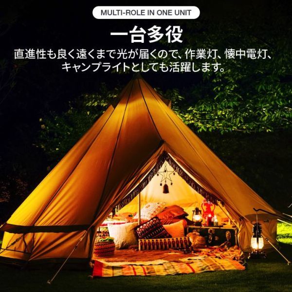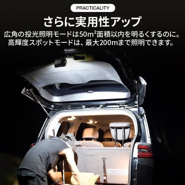 高輝度スポットモードは、最大200mの長距離を照射できます。幅広く照らすことだけでなく、直進性も良く遠くまで光を届けます。作業灯、懐中電灯、キャンプライト、テントライト、夜の犬散歩照明ライト、夜釣りとしても活用できます。