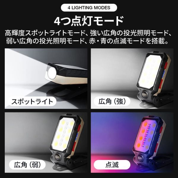 充電式で、軽作業用ワークライト、車の予備ライト、LEDハンドライト、手元灯、停電用、足元用照明としてお勧めです。