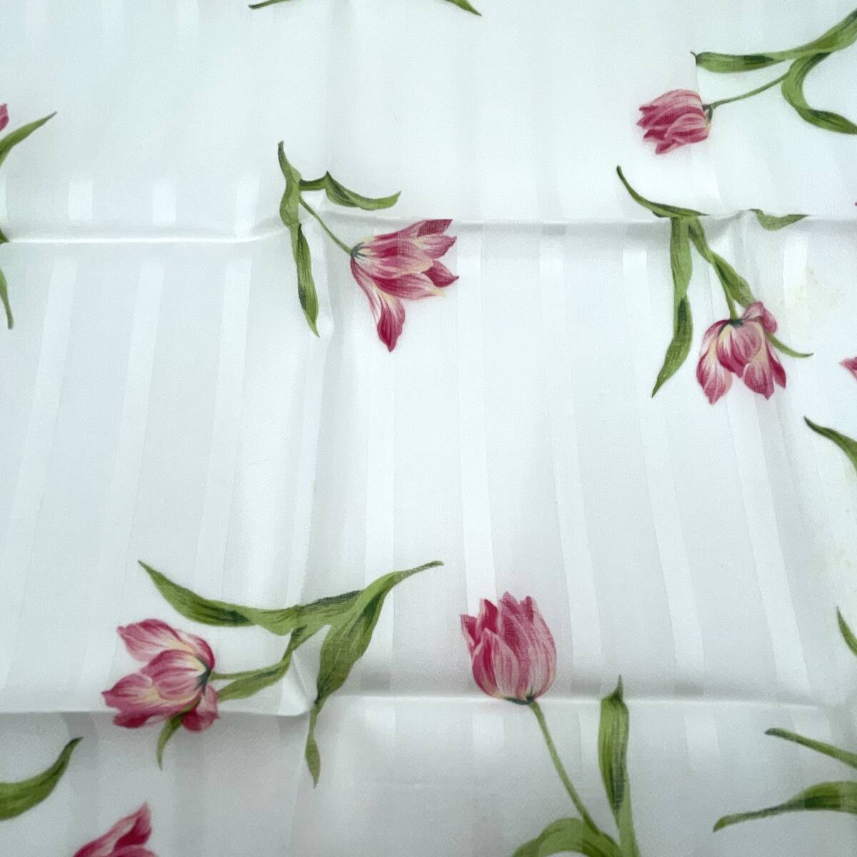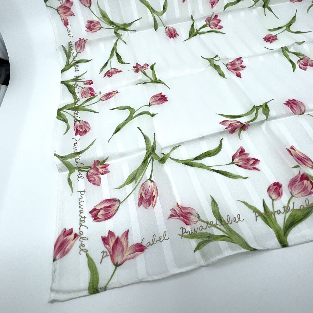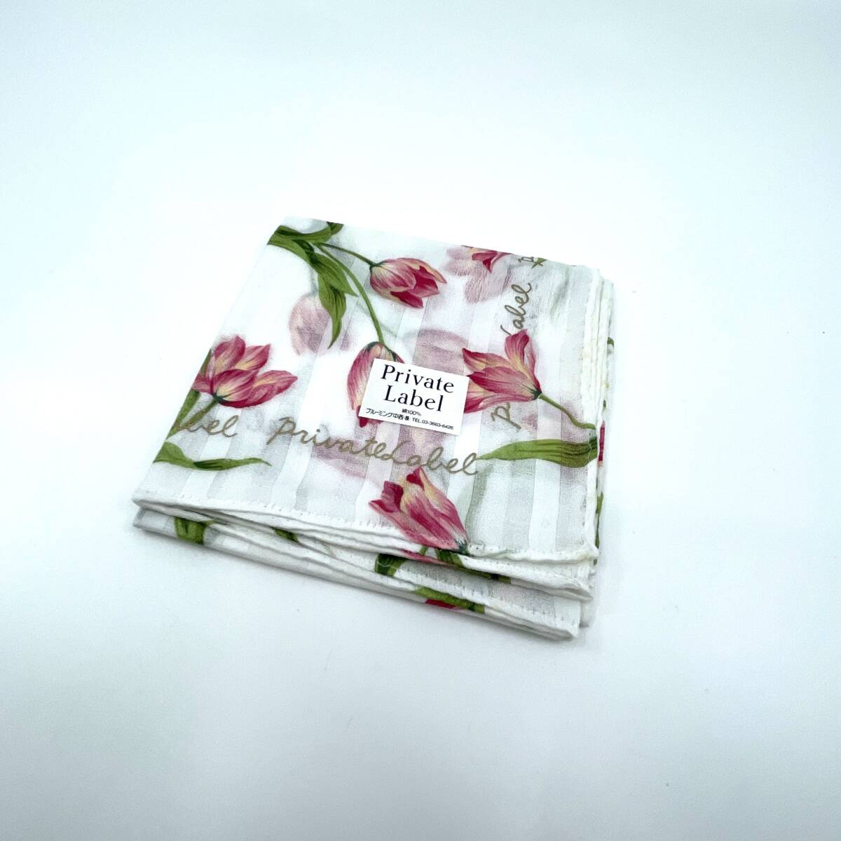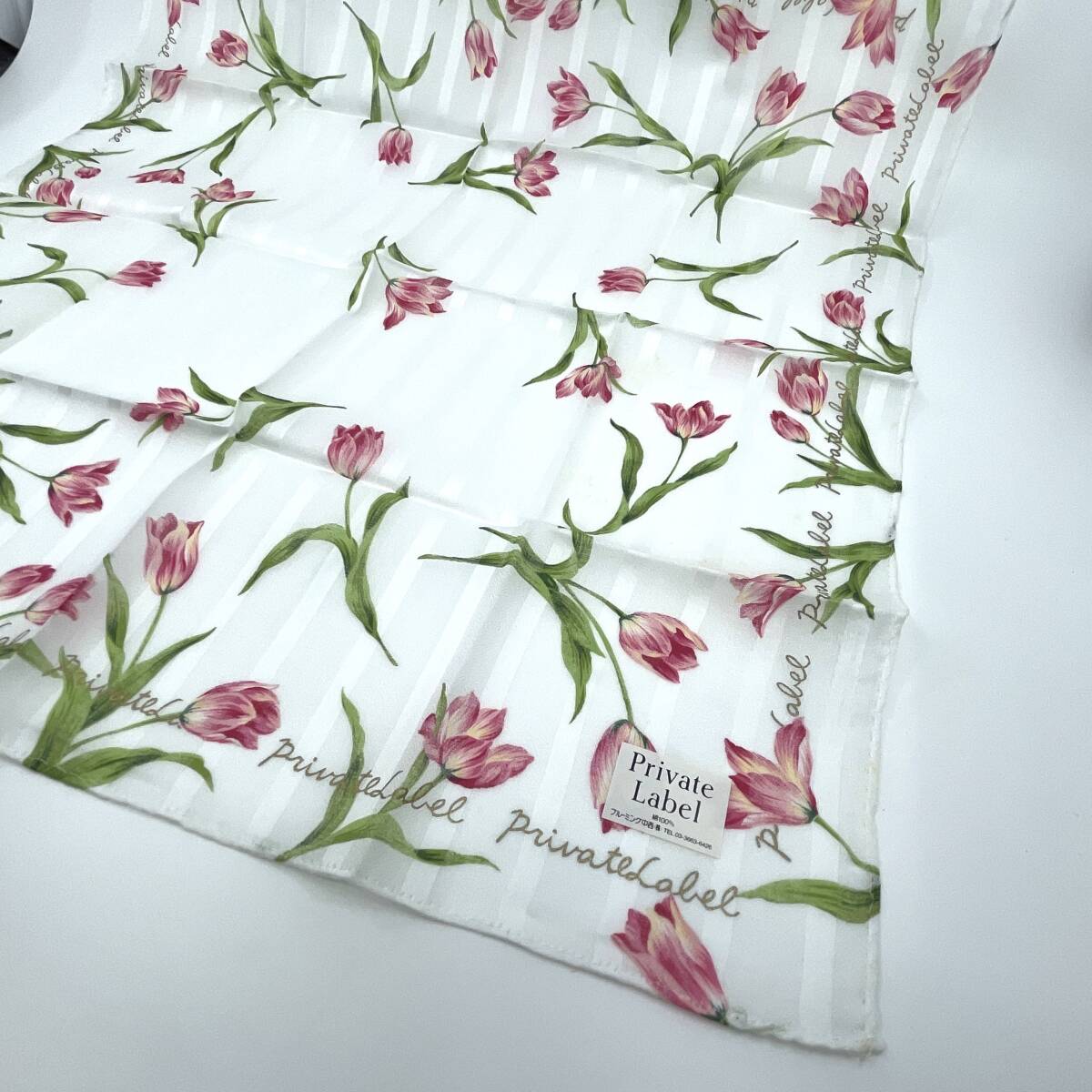 【シール付き未使用品】Private Label プライベートレーベル ハンカチ バンダナ 花柄 フラワー チューリップ ストライプ ホワイト×ピンク