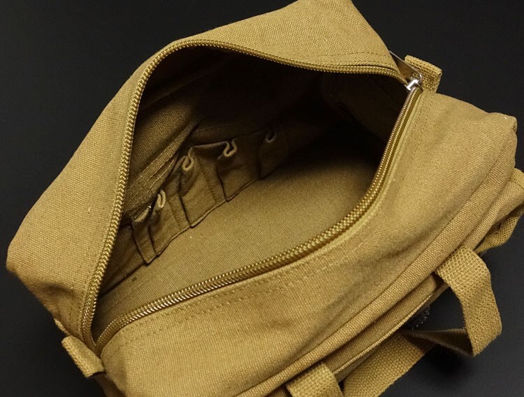 厚手で高密度なH.W.コットンキャンバス生地を使用したメカニックツールバッグ。