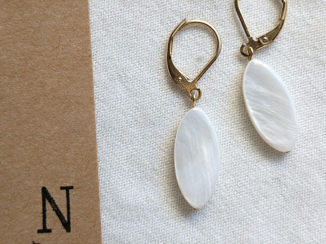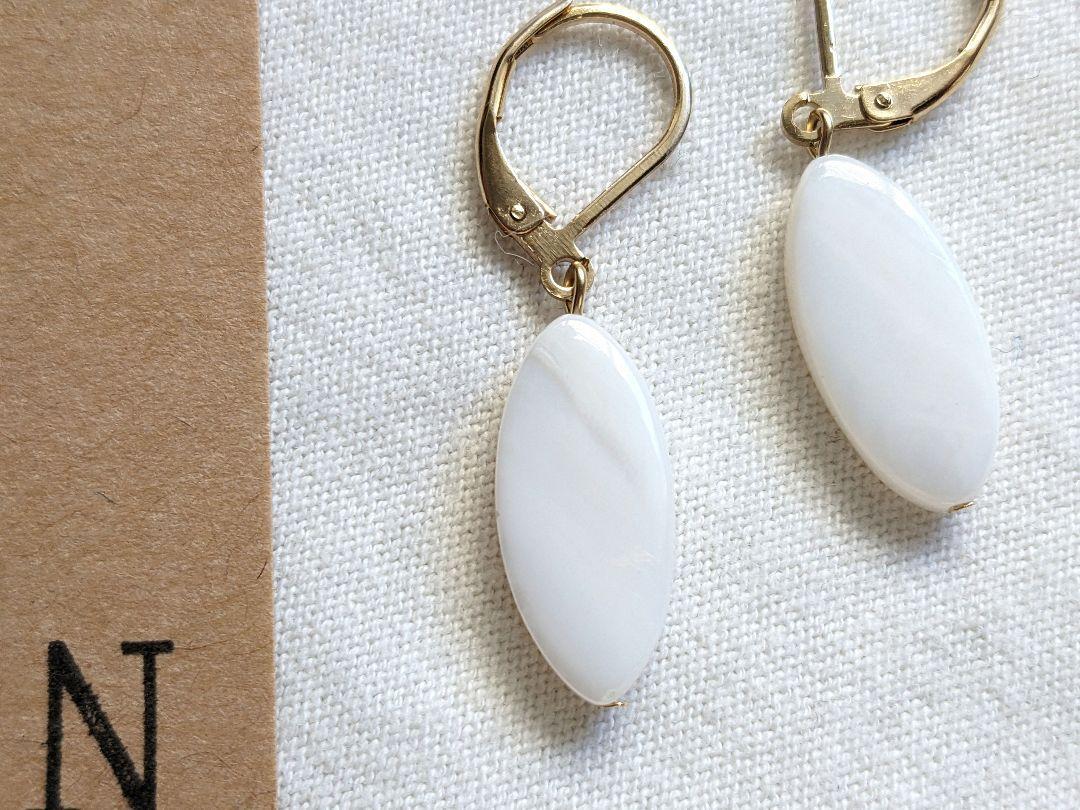 マーキス型シェルピアス イヤリング ハンドメイドピアス
