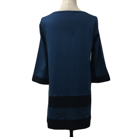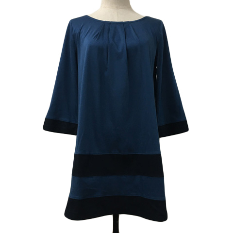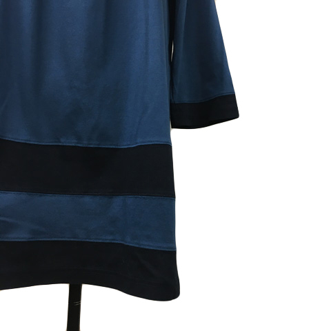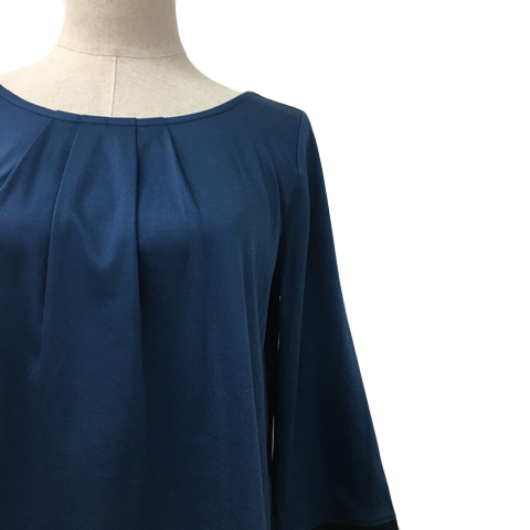 ニューヨーカー NEWYORKER チュニック カットソー ラウンドネック タック フレア 七分袖 M 青 緑 ブルー グリーン レディース