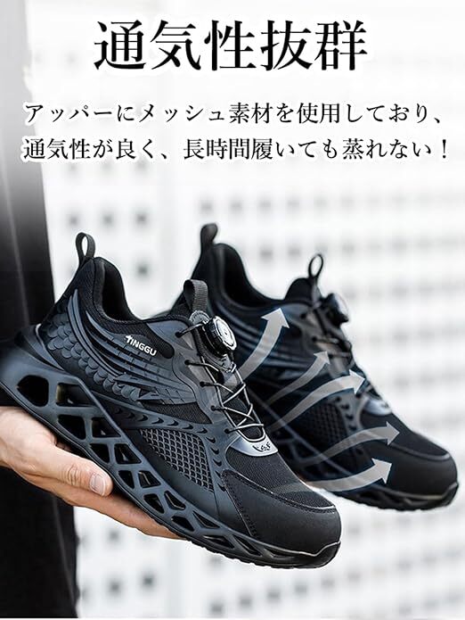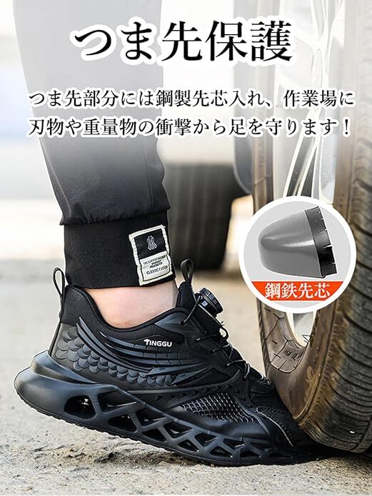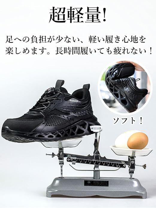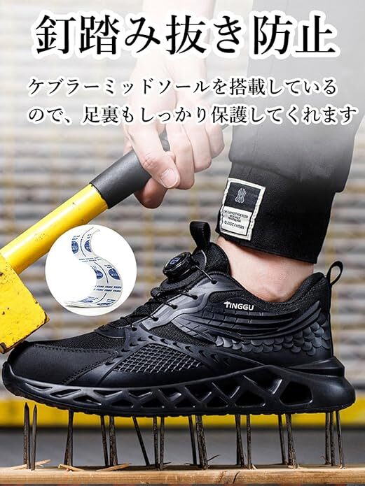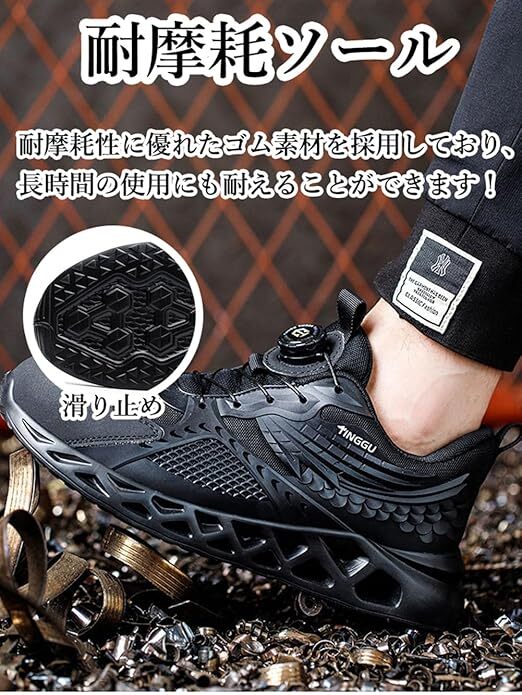 ダイヤル式安全靴 あんぜん靴 黒 作業靴 軽量 通気性 通気性 おしゃれ 鋼製先芯入り 釘踏み抜き防止 厚底 防滑 サイズ:26cm