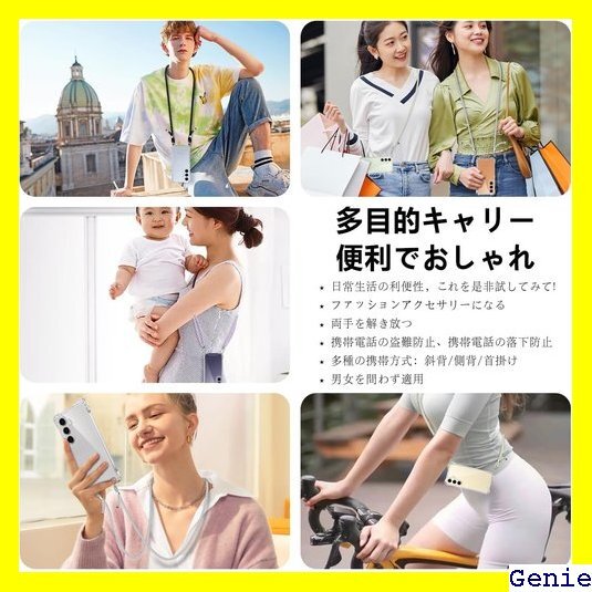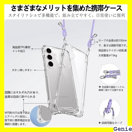 Galaxy S24 5G ケース クリア ギャラクシ 長さ調整可能 取り外し可能 落下防止 紛失防止 パープル 57