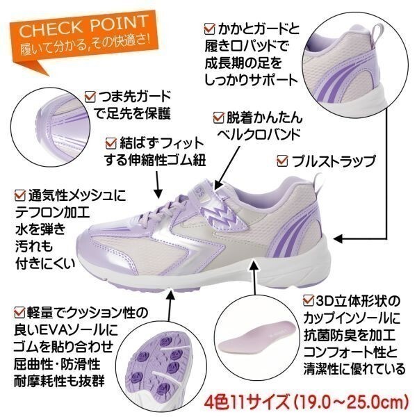 【2足セット】24868x2 新品 キッズ スニーカー ラベンダーx1 ミントx1 21.0cm 運動靴 男の子 女の子 撥水加工 抗菌 防臭 防滑底 軽量