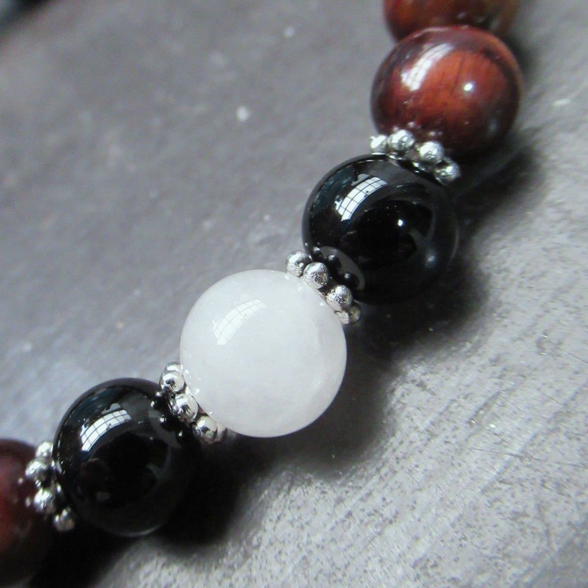 レッドタイガーアイxオニキスxローズクォーツxヘマタイトブレスレット 天然石 パワーストーン