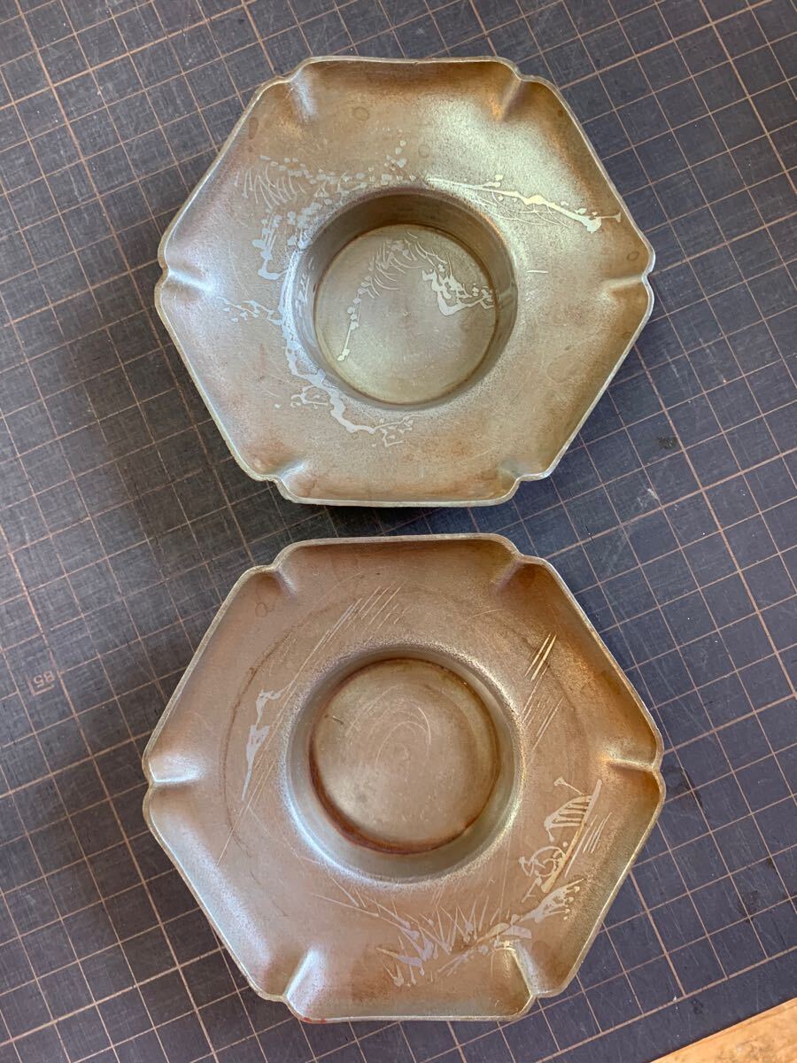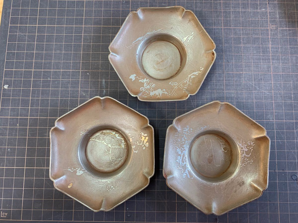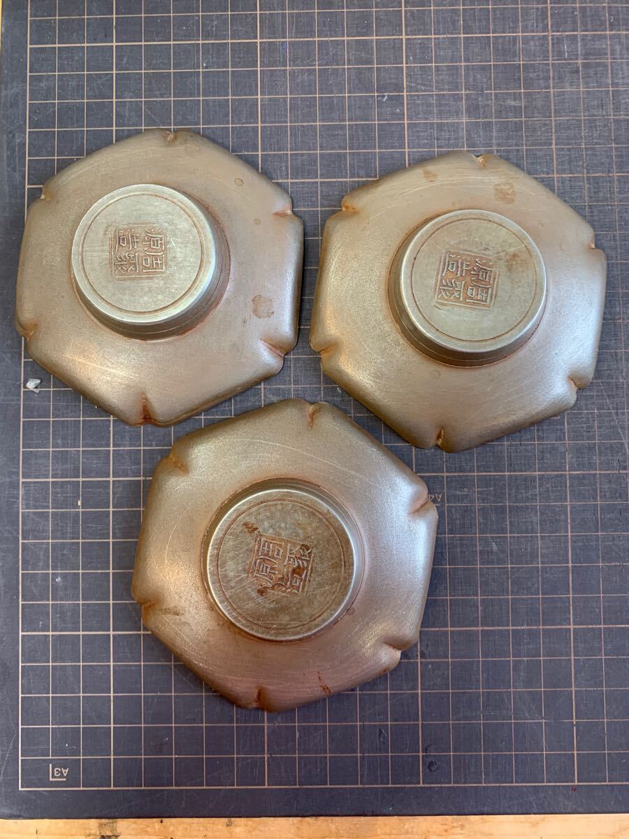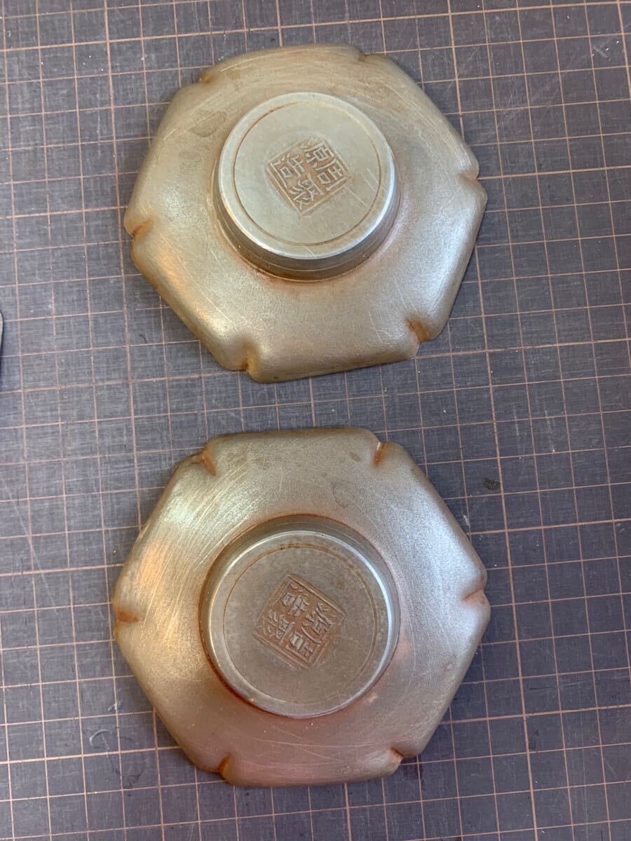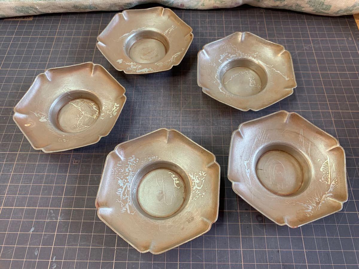 【現状品】煎茶道具 茶托 五客 周聚源造 中国 詳細不明 古錫