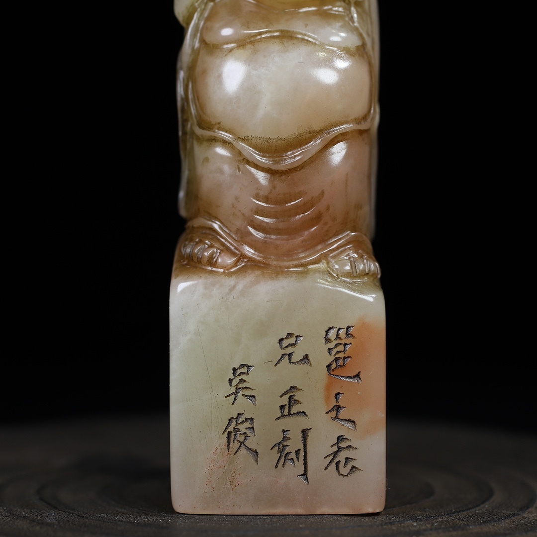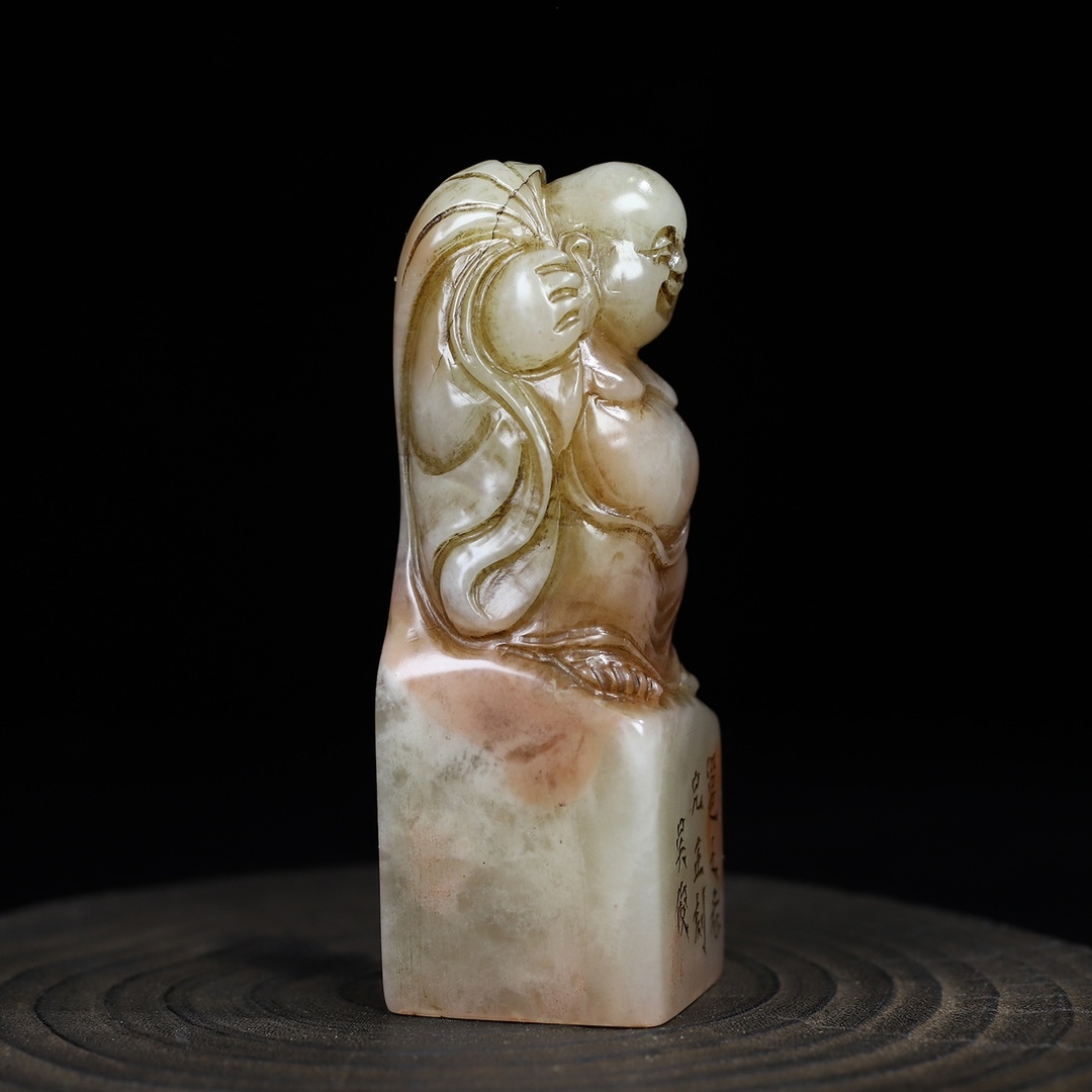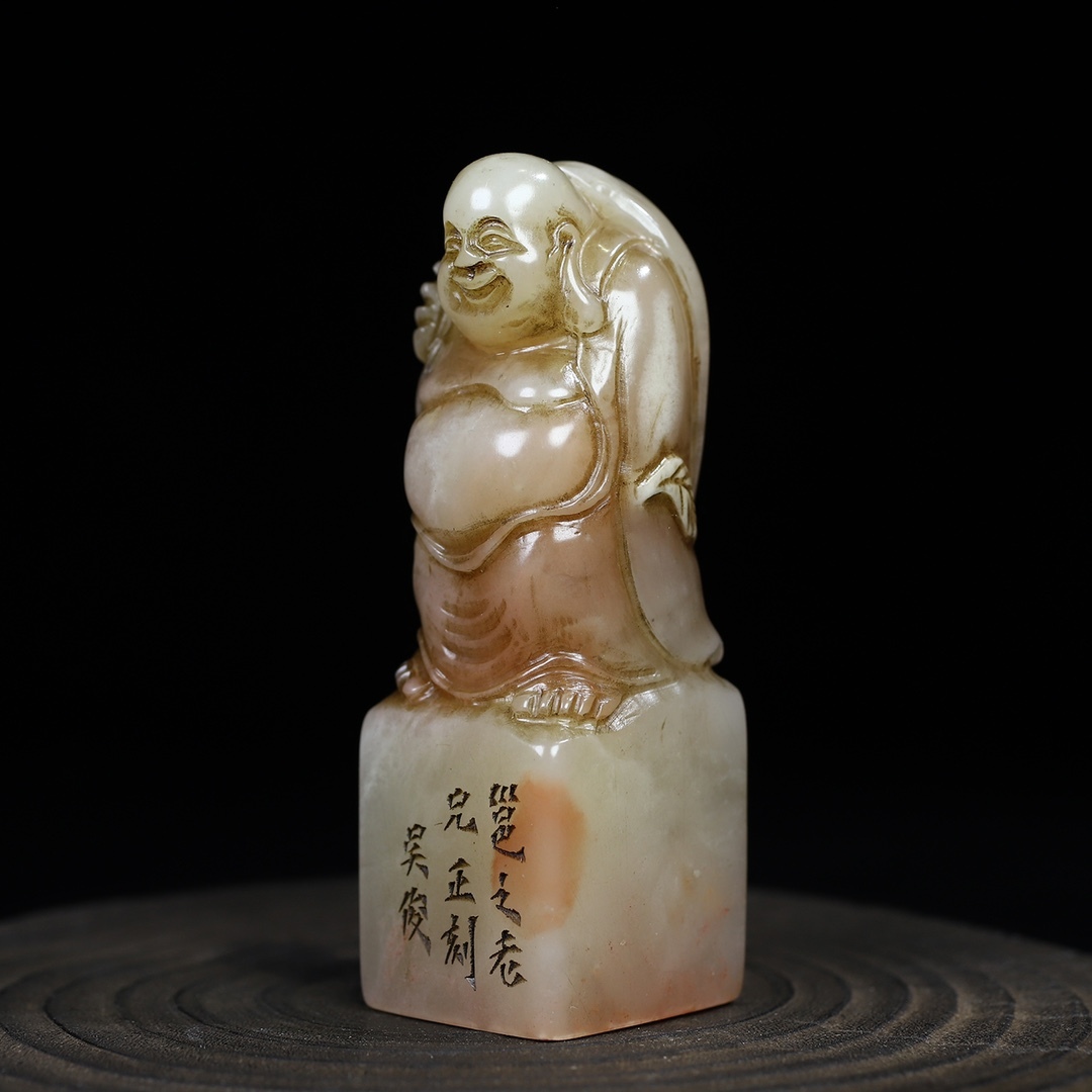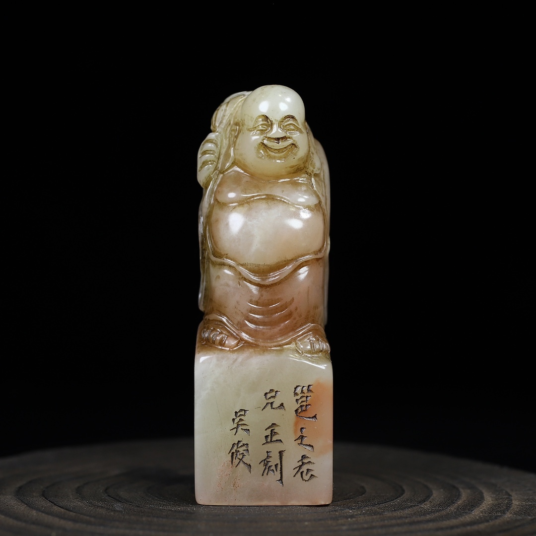 *珍品旧蔵* 清 壽山石 芙蓉石布袋彌勒佛印章 名人彫刻 閒章 印鑑 文房具 書道具 手彫り 篆刻 唐物 古賞物 中国古玩 ZK0219
