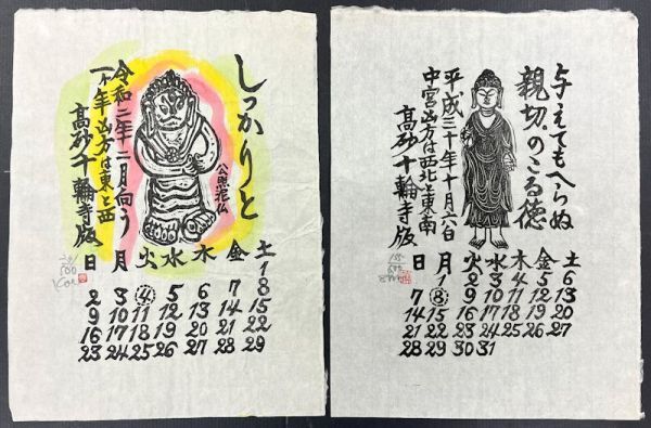 西田 光衛 (にしだ こうえ) 「木版刷カレンダー 2点」