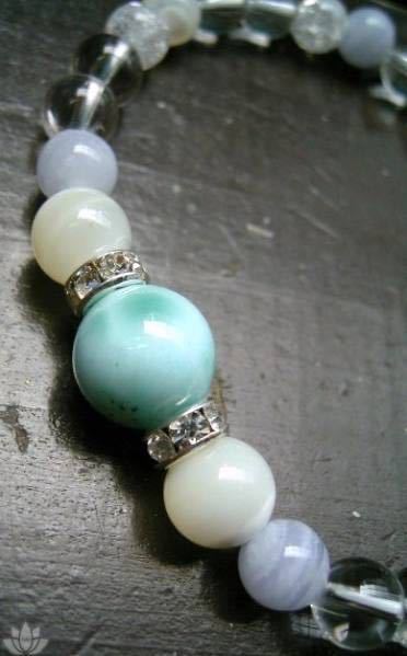 ラリマーxアクアマリンxブルーレースxクラック水晶ブレスレット 天然石 パワーストーン