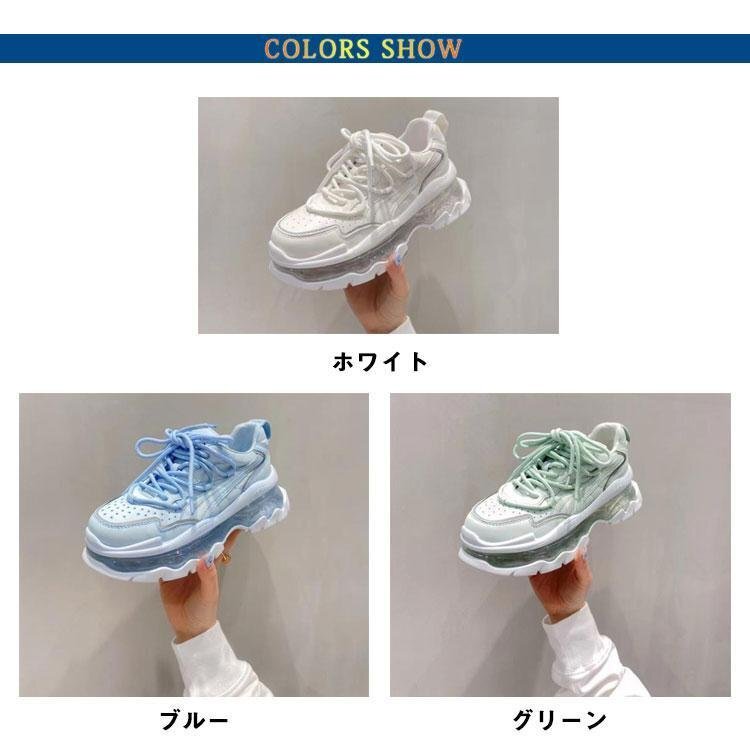 【24.0cm】厚底 スニーカー 涼しげ クリアソール ボリュームソール 足首ほっそり ダッドシューズ レースアップ ローカット 3色選択可