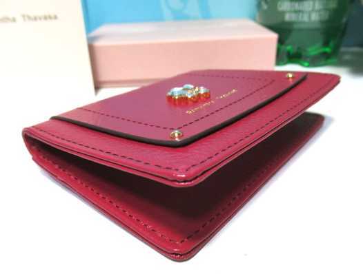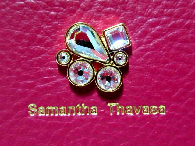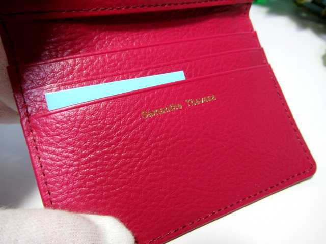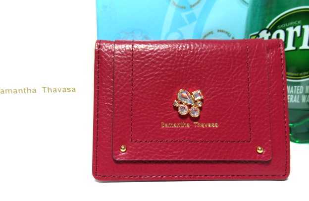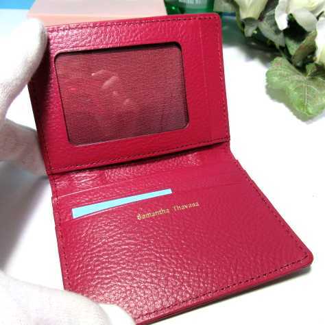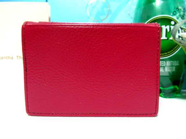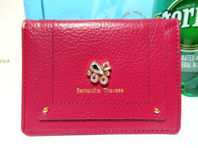 送料無料 35%引 サマンサタバサ キラキラ ビジュー付 ロゴ入 牛革 二つ折り パスケース カード入れ 定期入れ ワイン 新品 タグ付