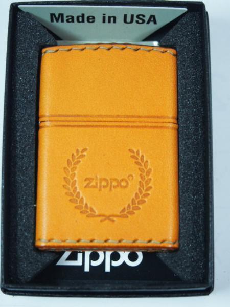 Zippo 革巻き ジッポーロゴ月桂樹(キャメル薄茶)LB-7プレーン