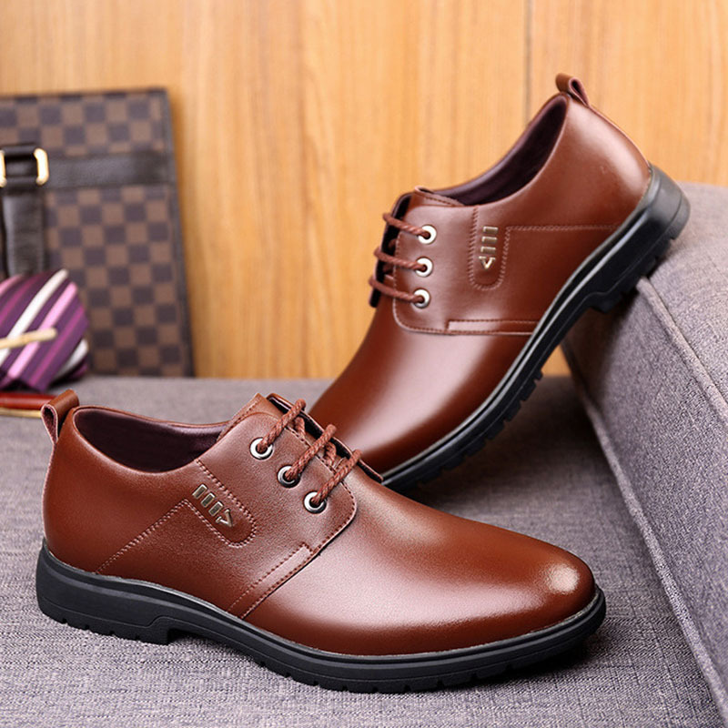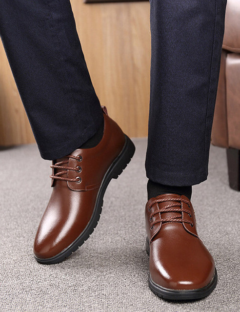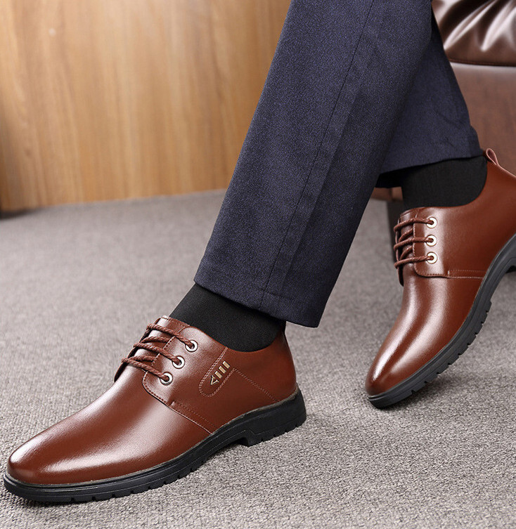 ビジネスシューズ メンズ 走れる 柔らかい 軽量 防水 衝撃吸収PU革 紳士靴 ブラウン 25cm