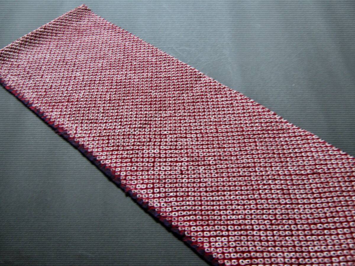 古布 半衿【正絹 総絞り/鹿の子 暗赤×黒】はぎれ