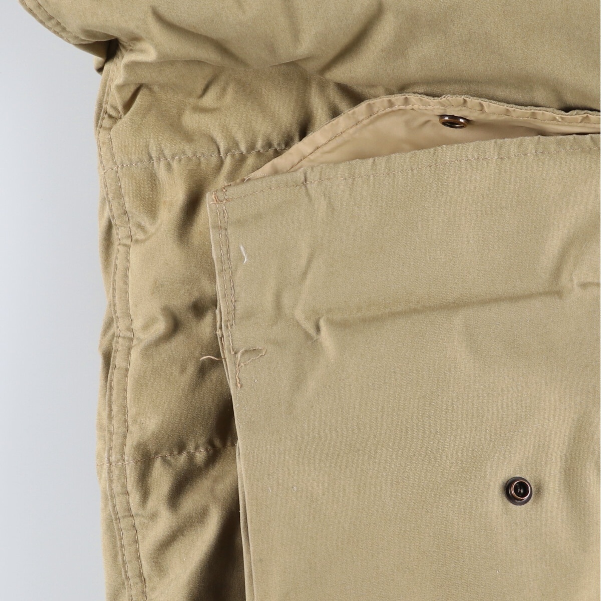 表記サイズ: XL 着丈: 78cm 身幅: 60.5cm 裄丈: 96cm 袖丈(脇下計測): 66cm ![]() | ![]() ランク:C USEDですので使用感などございますが、まだまだご愛用していただけます。 古着という事をご理解の上ご注文よろしくお願いします。 【状態追記】 ●フード欠損 ●前、腹部・裾・両腕・両袖先に汚れ ●前、両ポケット内に糸抜け、右袖先に穴 ●前、左袖先に擦れ ●後、首周り・背中・腰・裾・両腕・両袖先に汚れ ●後、右袖先に擦れ、左袖先に擦れ・穴 ●内側、裾に擦れ・糸抜け ●内側、中綿劣化 |